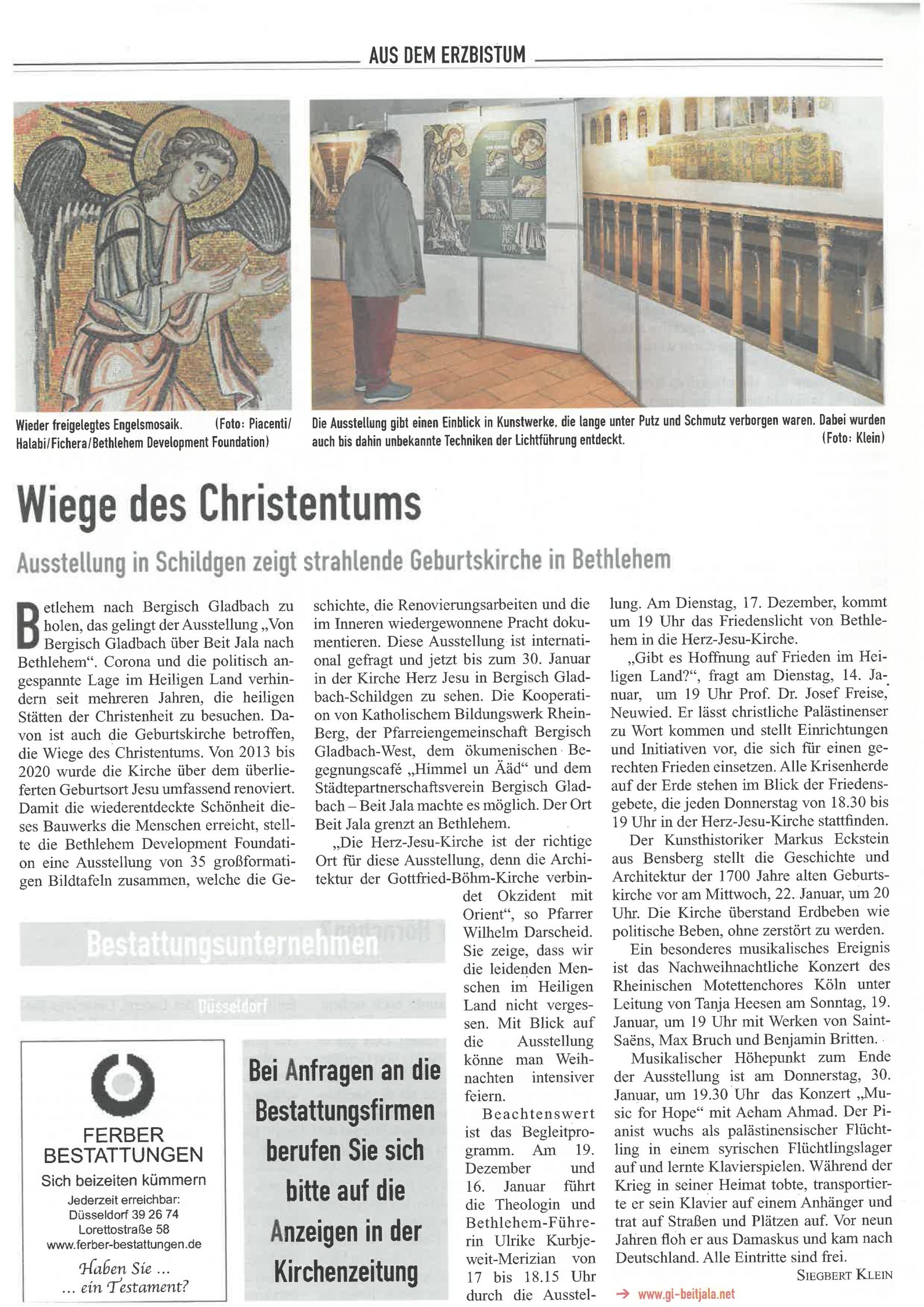 Bethlehem nach Bergisch Gladbach zu holen, das gelingt der Ausstellung „Von Bergisch Gladbach über Beit Jala nach Bethlehem“.