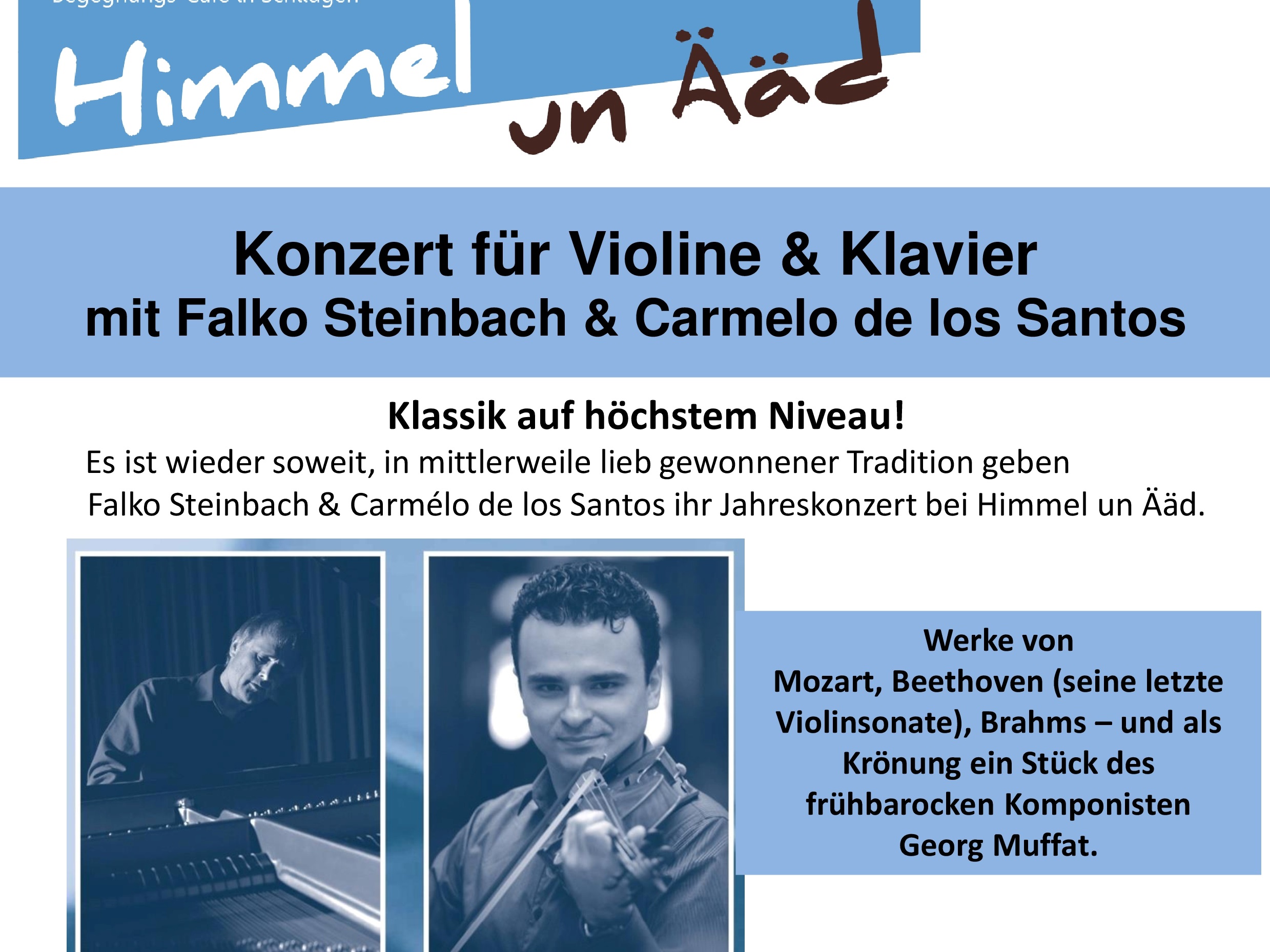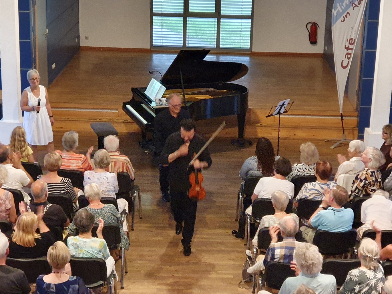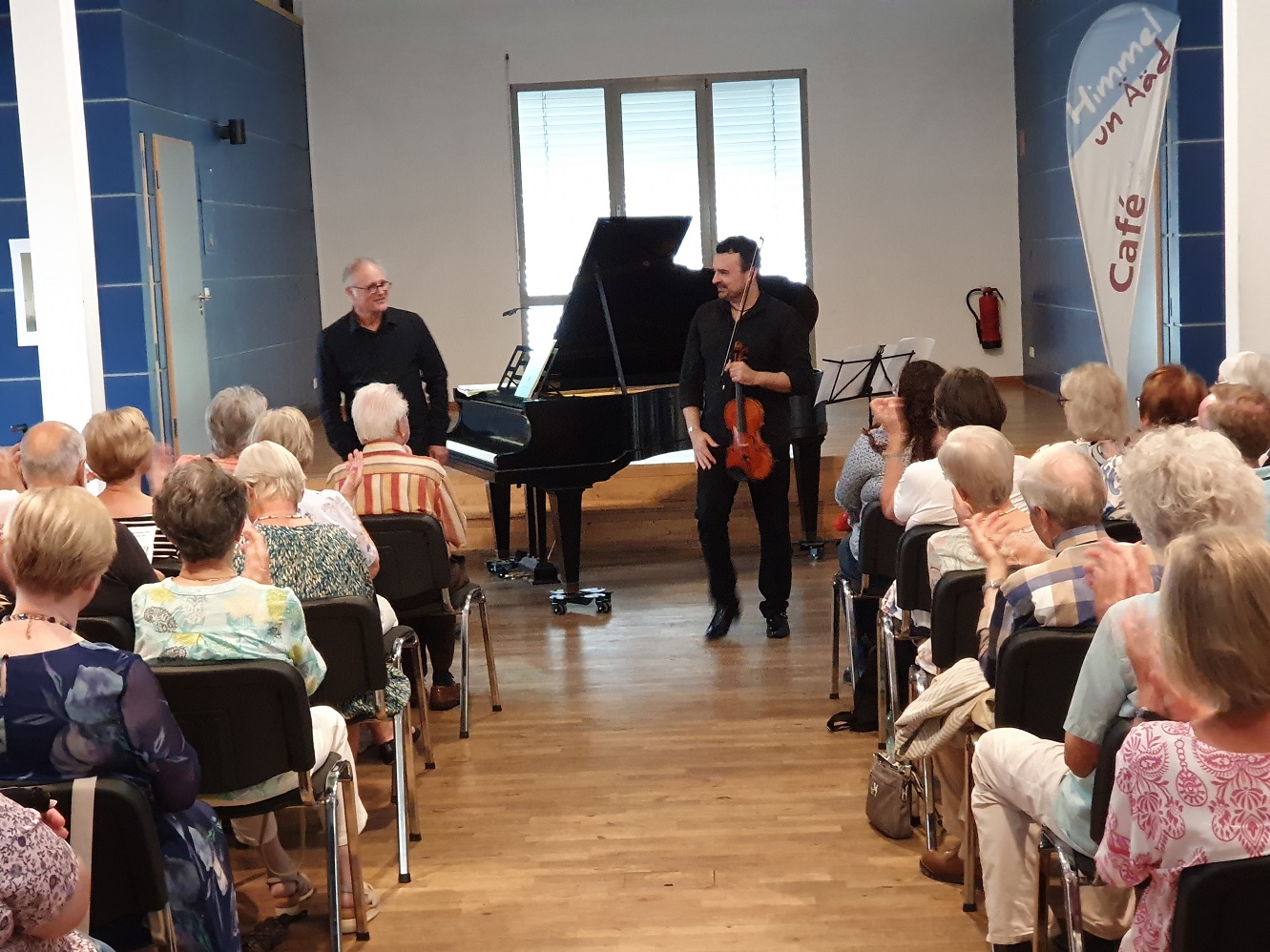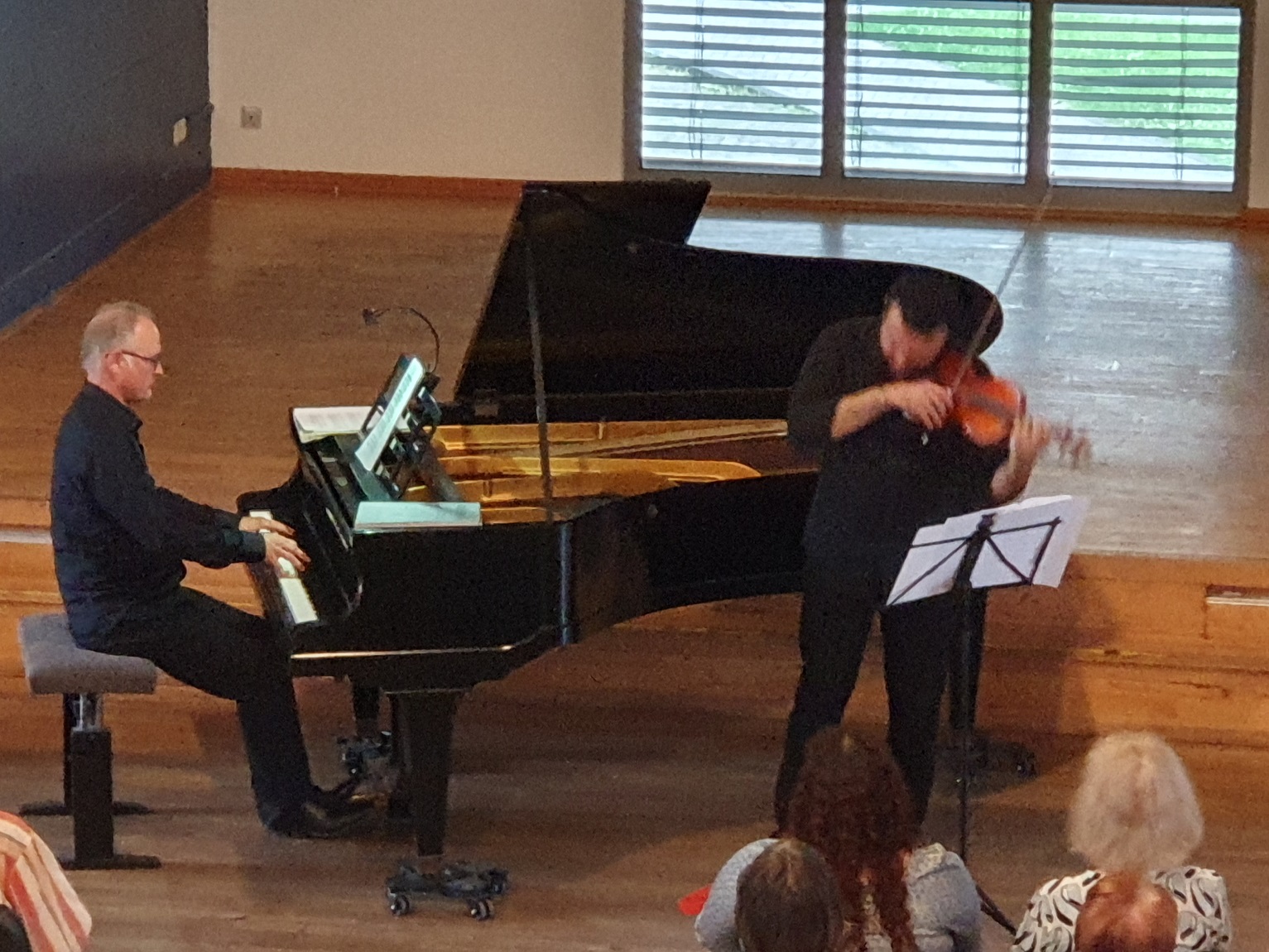 Falko Steinbach und Carmélo de los Santos haben es wieder einmal glänzend verstanden, die Konzertgäste bei uns in Schildgen mit ihrem virtuosen Klavier- und Violinen-Spiel in ihren Bann zu ziehen und zu begeistern. Ihre herausragende künstlerische Leistung wurde zu Recht mit stehenden Ovationen honoriert.
