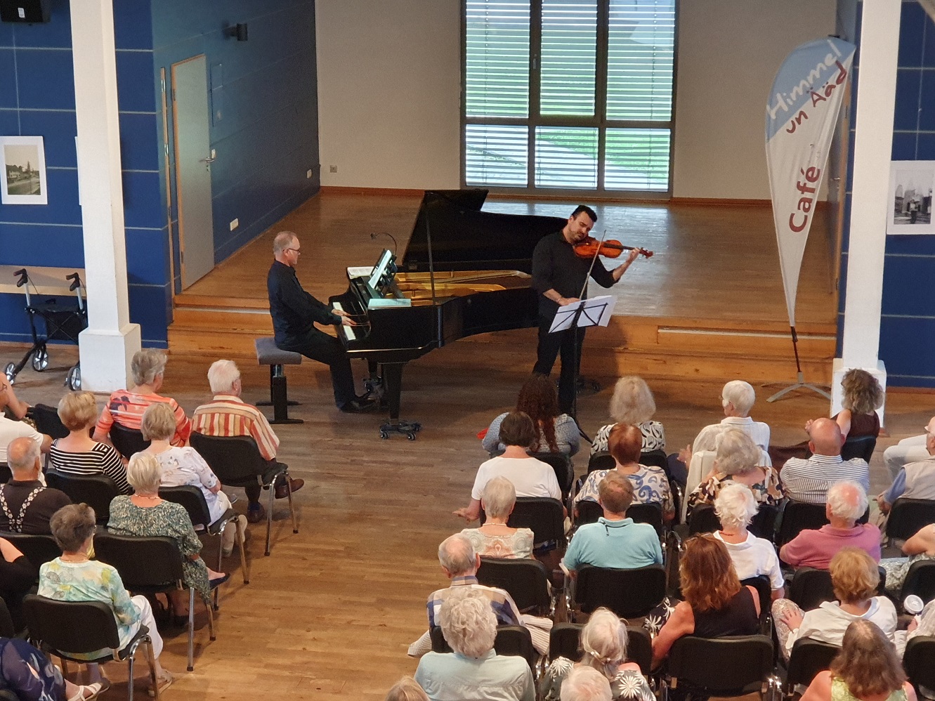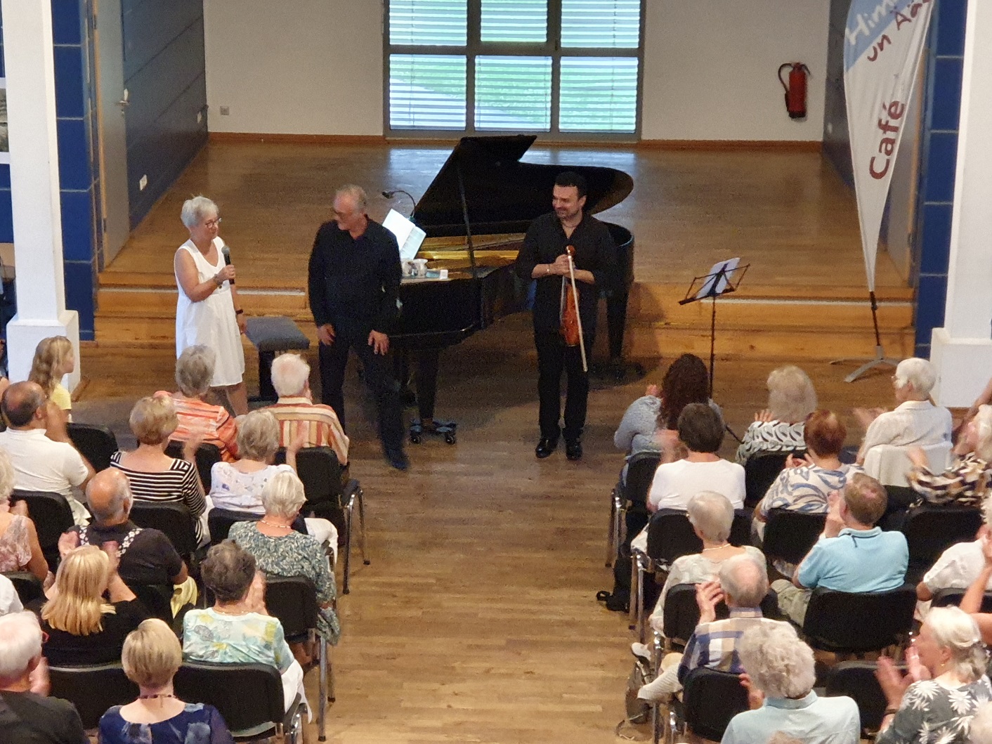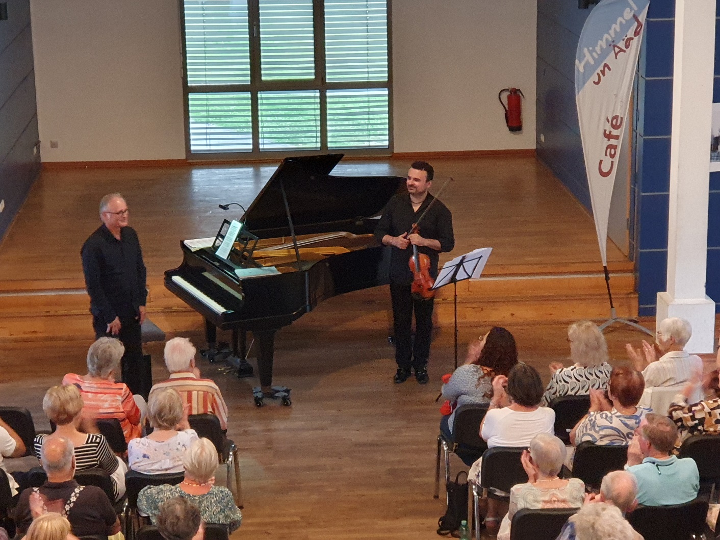 Falko Steinbach und Carmélo de los Santos haben es wieder einmal glänzend verstanden, die Konzertgäste bei uns in Schildgen mit ihrem virtuosen Klavier- und Violinen-Spiel in ihren Bann zu ziehen und zu begeistern. Ihre herausragende künstlerische Leistung wurde zu Recht mit stehenden Ovationen honoriert.
