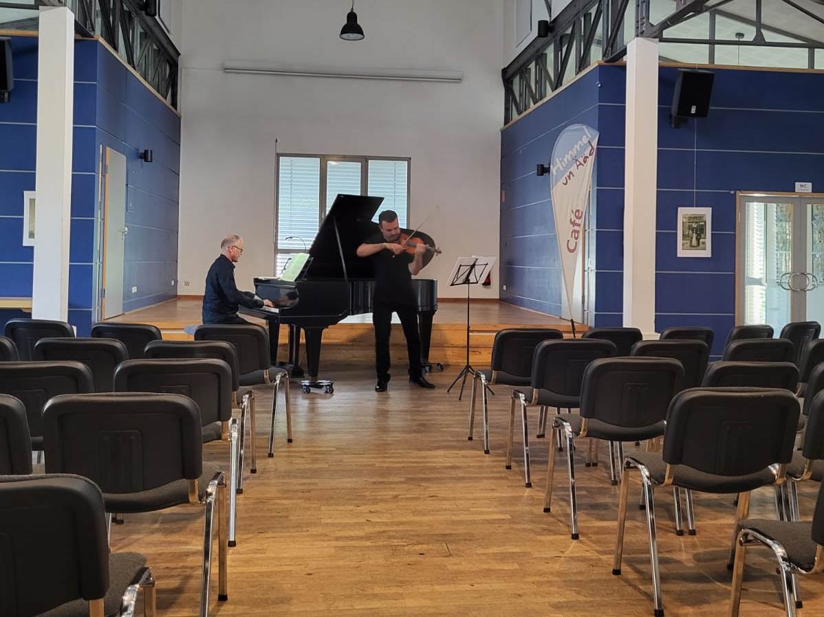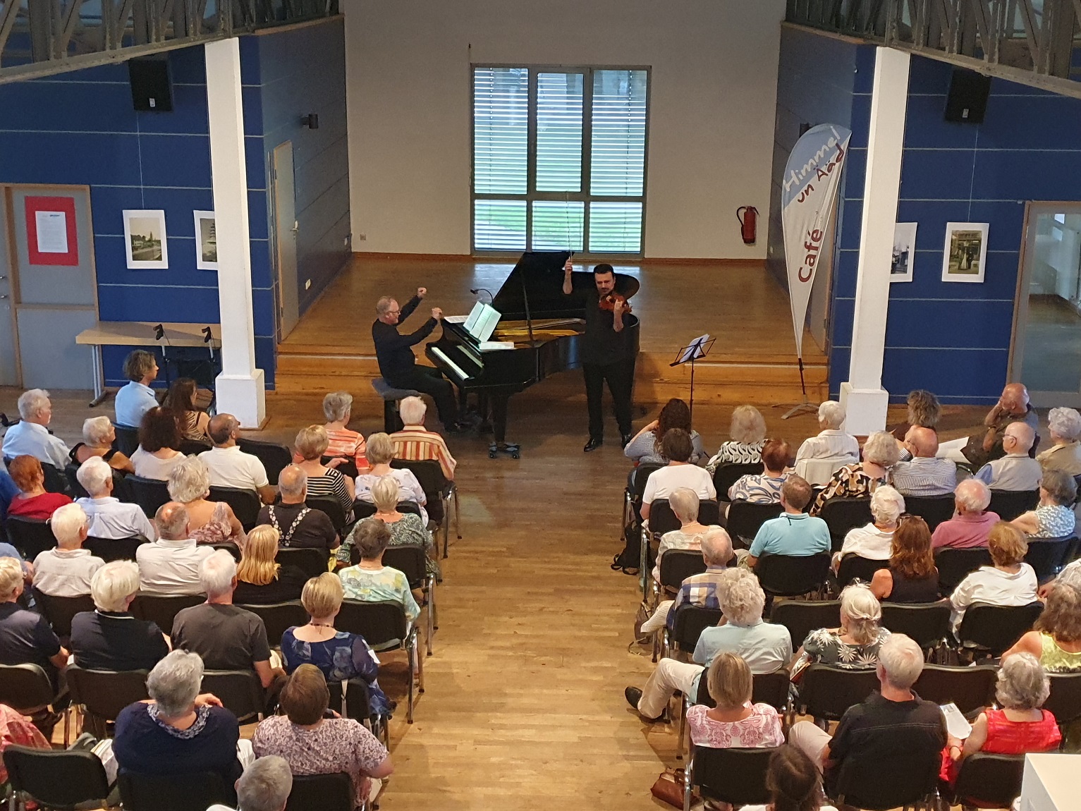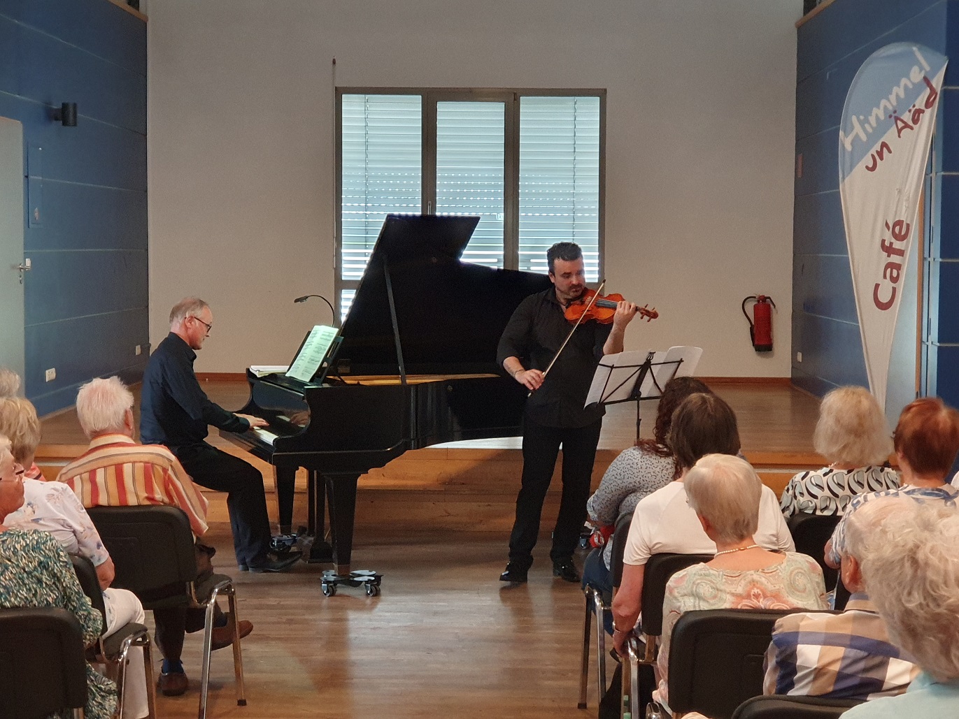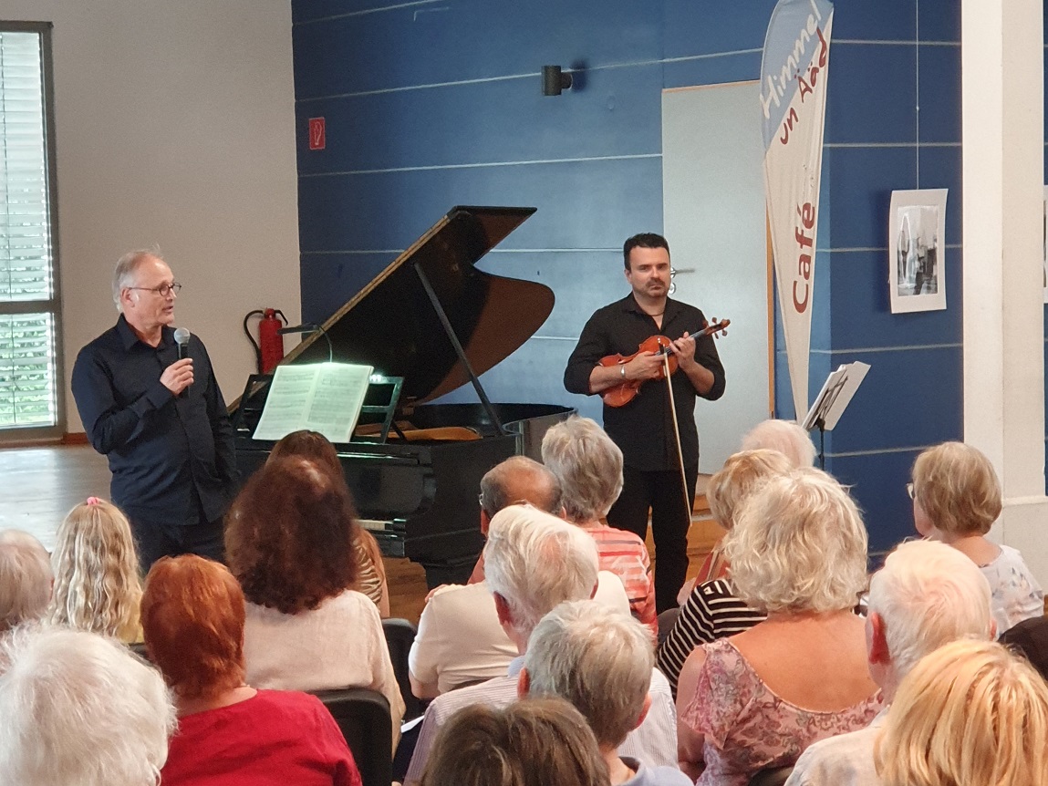 Falko Steinbach und Carmélo de los Santos haben es wieder einmal glänzend verstanden, die Konzertgäste bei uns in Schildgen mit ihrem virtuosen Klavier- und Violinen-Spiel in ihren Bann zu ziehen und zu begeistern. Ihre herausragende künstlerische Leistung wurde zu Recht mit stehenden Ovationen honoriert.