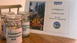 Die ersten Kräuter des Jahres aus dem Garten der Begegnung sind liebevoll zu Kräutersalz verarbeitet worden – 18 Gläschen sind es geworden. Danke liebe Brigitte.