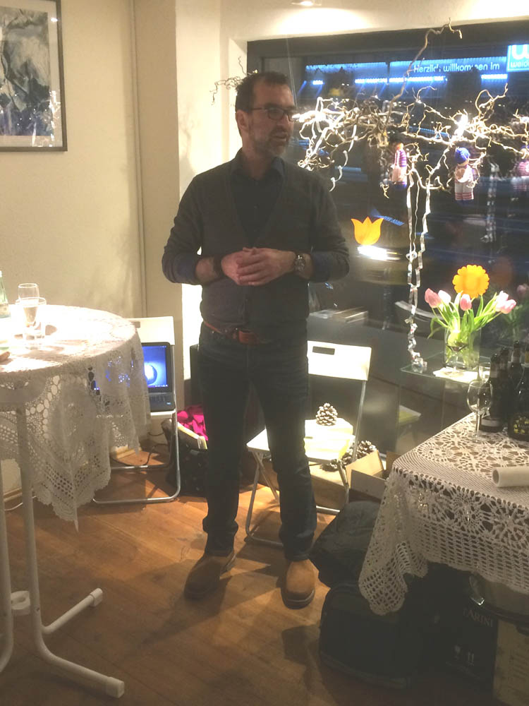 Ein wunderbarer Abend, bei dem Gaby Friedel Krimis aus Italien vorstellte, Thomas Weiden dazu passende Weine zu verkosten gab und Richard Sälzer kleine selbstgemachte italienische Köstlichkeiten servierte.