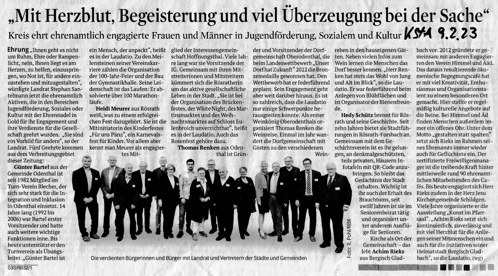 Die Goldene Ehrennadel des Rhein.-Bergischen Kreises auch für den H&Ä-Vorsitzenden Achim Rieks.