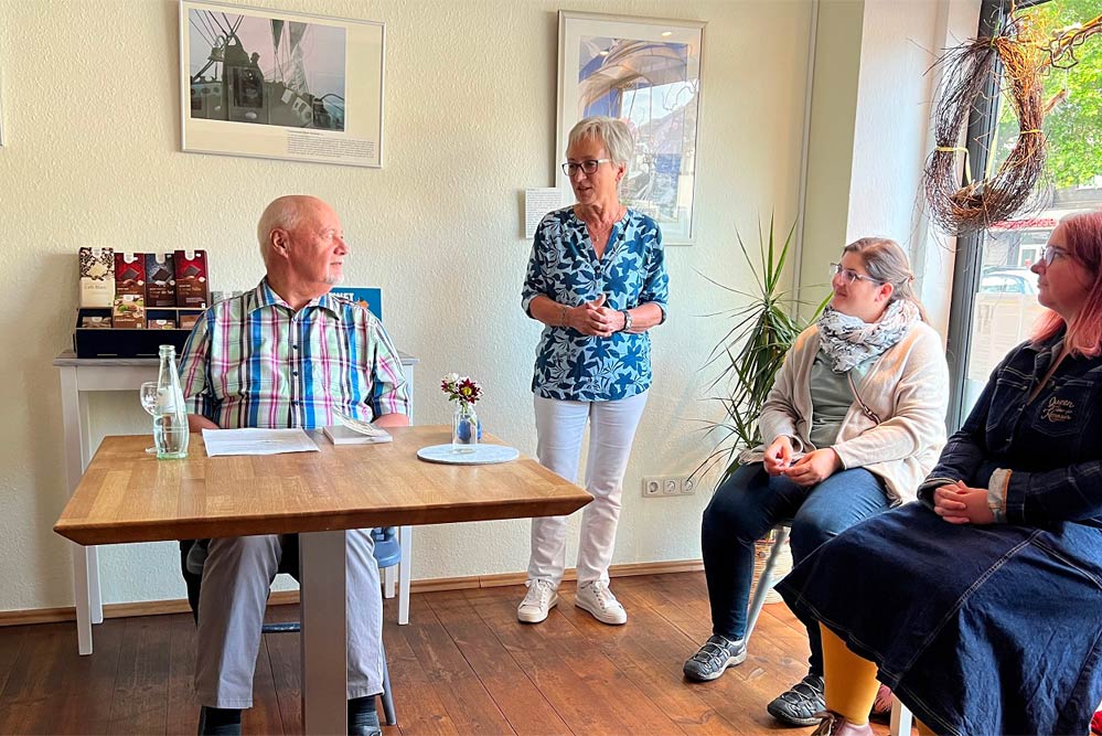Lothar Speer erzählte das Leben einer außergewöhnlichen Frau, die viel mit der Bergisch Gladbacher Stadtgeschichte zu tun hat. Er las kleine Auszüge aus seinem Buch und ergänzte immer wieder mit seinem reichen Fach- und Hintergrundwissen sowie kleinen Anekdoten. Sein Roman ist so genial geschrieben, dass es zunächst für uns Zuhörer:innen so erschien, als handele es sich um „wahres geschichtliches Geschehen“. Einige Passagen im Roman entsprechen wissenschaftlich belegten Tatsachen, aber die Geschichte „drumherum“ entspringt der Phantasie des Autors.