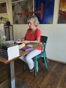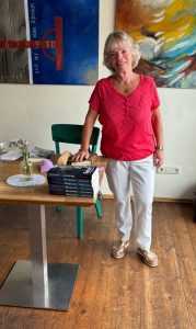 Kurz stellte sich Wilma den Gästen vor, denn neben ihrer treuen Fangemeinde waren auch neue Gäste gekommen. Sie schreibt mit Leidenschaft Romane und Krimis, die Ideen gehen ihr nicht aus, denn sie sagt: „Ich habe eine große Familie mit vielen Kindern, Neffen, Nichten und Enkeln – da ist immer etwas los.“ Mit einem Augenzwinkern erzählt sie, dass es natürlich noch keine Entführungen, Erpressungen oder Tötungsdelikte in der Familie gab.