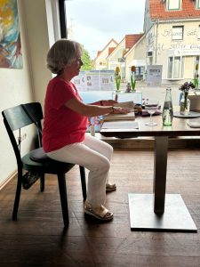 „Ein spannungsgeladener Familienkrimi ohne blutrünstige Szenen und mit einem Hauch Humor“ – so lautete eine der ersten Rezensionen auf Lovelybooks zum neuen Cosy-Krimi „Bedroht – im Visier des Erpressers“ von Wilma Borghoff – Schildgenerin und engagierte H&Ä-Ehrenamtlerin. Diesen Eindruck konnten die Gäste des heutigen Abends gut bestätigen. Wilma, die inzwischen zum dritten Mal im Himmel un Ääd als Autorin zu Gast war, gestaltete einen Leseabend mit ihrem vierten Cosy-Krimi.