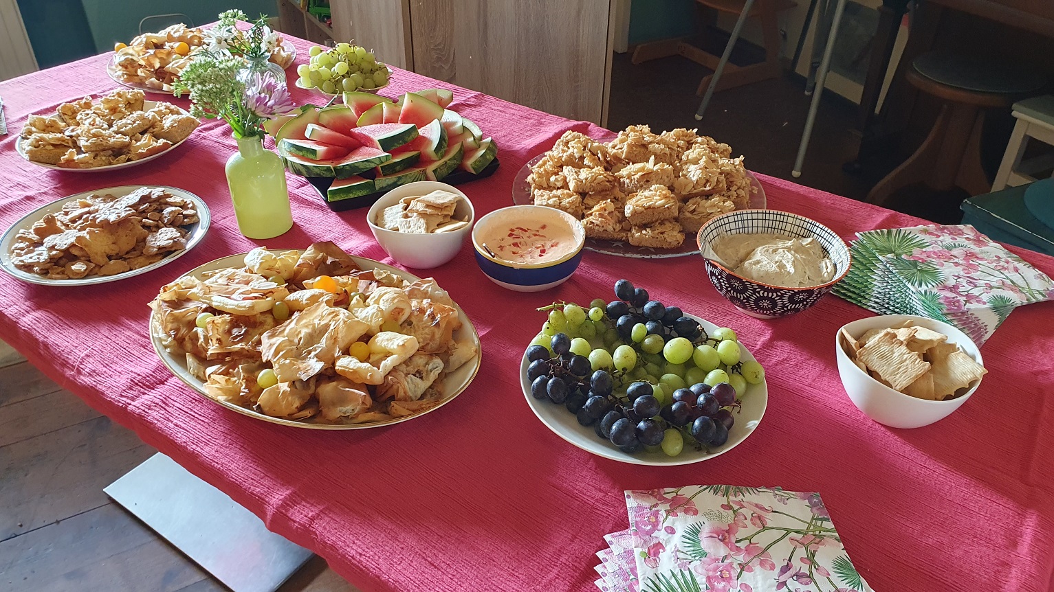 Es ist inzwischen Tradition, die Gäste in der Pause mit einem kleinen Büffet zu verwöhnen, das auch dieses Mal wieder großen Zuspruch fand. Daher konnten sich die Märcheninteressierten nicht nur mit einem „Vitaminstoß“ für Geist und Seele, sondern auch für den Leib gut gelaunt und lachend auf den Heimweg begeben.