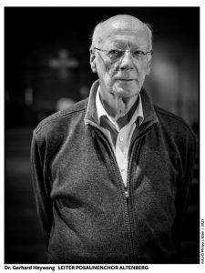 Heinrich Mehring (DGPh): „Es hat lange gebraucht, bis ich mich gefragt habe, wie Schildgen eigentlich für mich aussieht, obwohl diese Frage für einen Berufsfotografen eigentlich sehr nahe liegen sollte. Aber vielleicht waren 37 Jahre Industriefotograf, Atelierleiter und Bildredakteur bei Bayer zu fordernd. Erst im Ruhestand konnte ich zurückfinden zu der ursprünglichen Neugier, die mich in dieses Metier geführt hat. Einer der prägenden Einflüsse für mich war seit Beginn meines Interesses für Fotografie das Werk August Sanders, und so lag es nahe, eine kleine Hommage an diesen großartigen Porträtisten und sein Werk „Menschen des 20. Jahrhunderts“ zu beginnen mit dem angemessen bescheidenen Titel „Menschen in Schildgen“.
