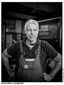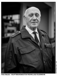 Philip J. Bösel M.A. (DGPh): „Ehrenamtlich fotografiere ich seit Jahren für das THEAS Theater in Bergisch Gladbach. Hauptberuflich arbeite ich seit 1989 als Fotograf und Grafikdesigner beim WDR in Köln. Als ich vor rund einem Jahr vom Projekt „Menschen in Schildgen“ hörte, war ich direkt begeistert und stimmte sofort zu, die Arbeit von Heinrich Mehring weiter zu führen. Auch ich orientierte mich am Werk von August Sander. In manchen meiner Fotografien sind kleine Hinweise zum Ort und zur Tätigkeit der Porträtierten zu finden.