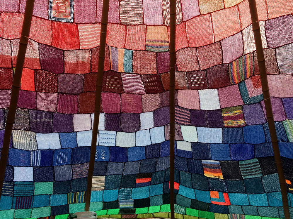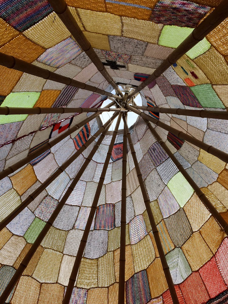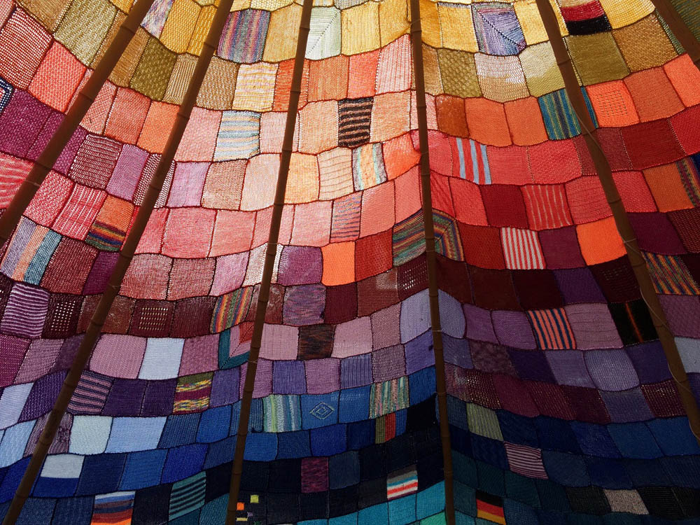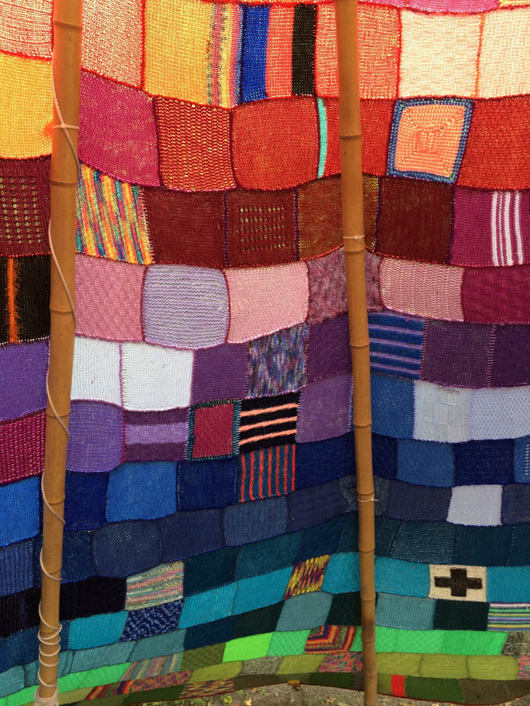 Dafür soll unser gestrickt/gehäkeltes Zelt stehen. Ein Zelt: lichtdurchlässig, mit leuchtenden Farben, mit der Schönheit verschiedener Muster, von großer Zartheit, es vermittelt Geborgenheit.