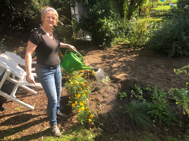 Auch freuen wir uns über tollen Zuwachs im Team: Annette Voigt bereichert nun unser Team. Mit ihr haben Anne und Uta gejätet und gepflanzt. Rechts neben dem Sitzplatz unter der Eibe wachsen nun Anemonen, Iris und Glockenblumen. Dr. Peter Schnegg hat sie uns gespendet.