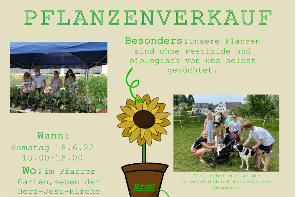 Nächsten Samstag, 18.6., 15-18 Uhr verkaufen die Schüler ihre Pflanzen auch bei uns im Garten der Begegnung.