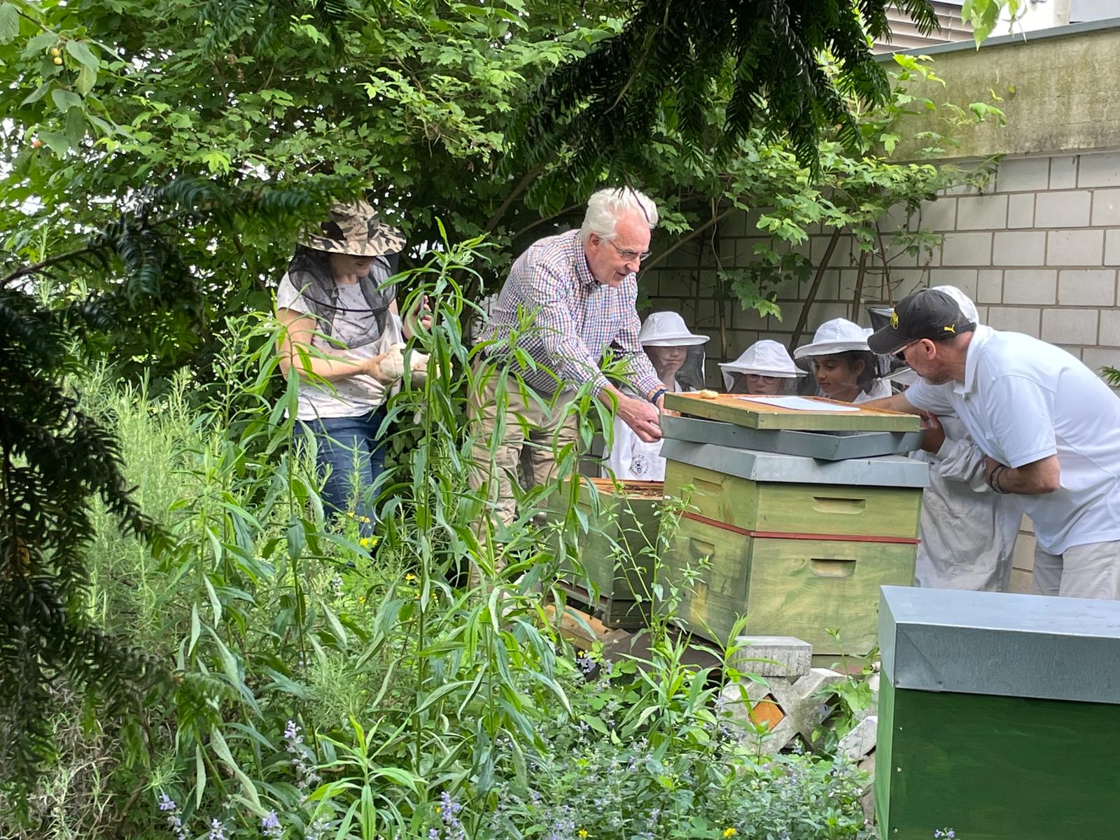 Heute mit Zutaten aus dem Garten der Begegnung das Mittagessen im Himmel un Ääd zubereitet … mit Mangold und frischer Pfefferminze.Vorspeise: Melone mit Feta und Minze und als Hauptgericht Gemüsecurry auf Reis. Danke, liebe Karin, für deinen Einsatz in unserem Garten- und auch im Kochteam; es hat wie immer richtig