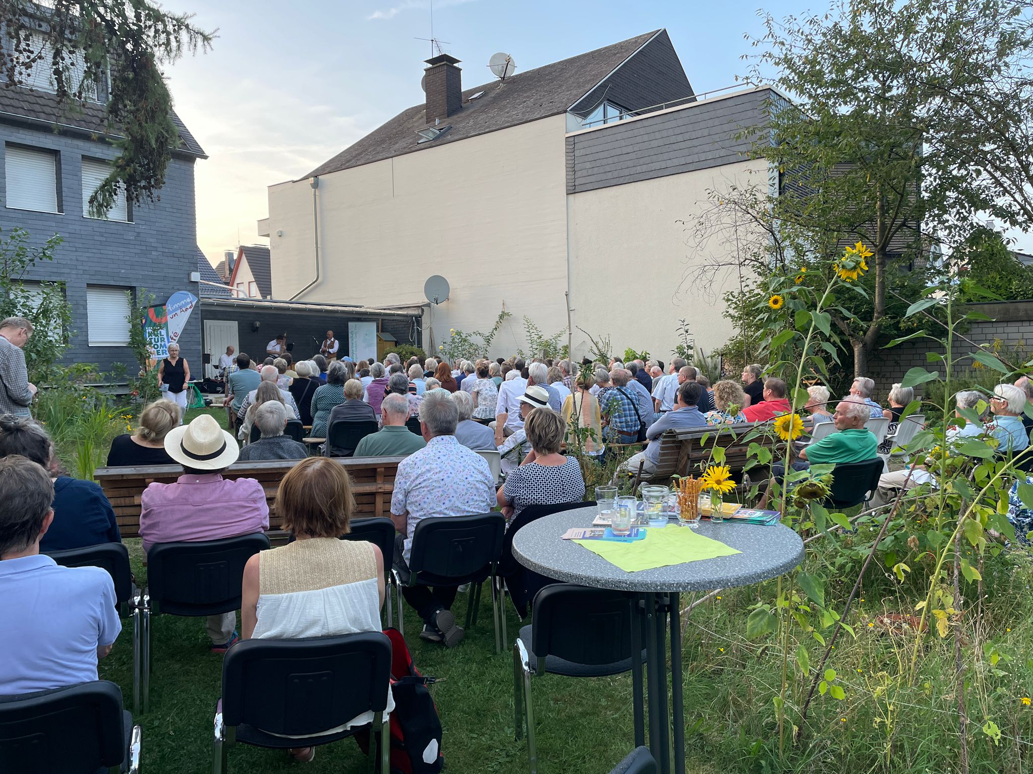 Es war ein wunderschöner Abend im Garten der Begegnung – Klezmer-Klänge und Erzählungen zu jiddischer Volksmusik mit „FREYLECHS“.Mal wieder eine gelungene Kooperation von Himmel un Ääd mit dem Städtepartnerschaftsverein Ganey Tikva – Bergisch Gladbach im Rahmen des städtischen Kultursommer.Bis in die Dunkelheit begeisterten die Musiker die ca. 150 Gäste. hier