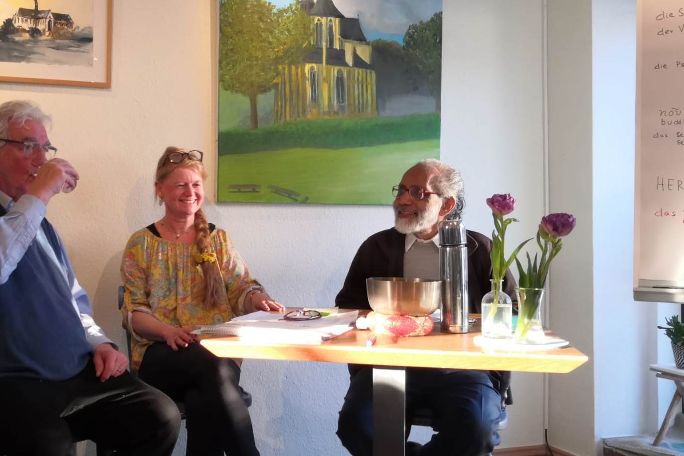 Nicht nur die über 40 Zuhörer waren beeindruckt und folgten gebannt den Ausführungen von Pater Dr. Sebastian Painadath. Auch er selbst fand den Abend im H&Ä-Café viel schöner als den im Kapitel-Saal des Erfurter Dominikaner-Klosters, in dem er einige Tage zuvor den gleichen Vortrag gehalten hatte.