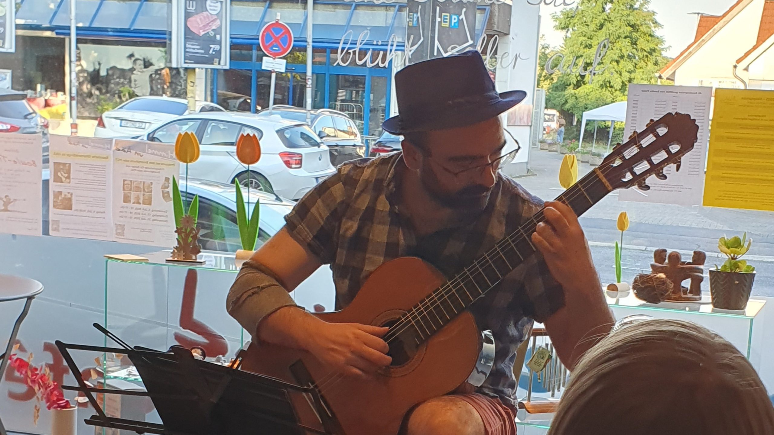 Es war mal wieder ein virtuoser Gitarrenabend im voll besetzten H&Ä-Café. Für das letzte Konzert vor seinem Heimat-Sommerurlaub in Barcelona hatte Manuel ein abwechslungsreiches Programm zusammengestellt