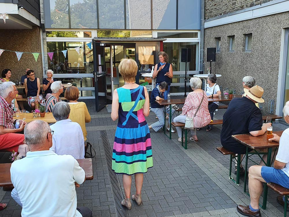 Volker Börkewitz und Antje Rinecker im Garten und alle anderen vor ihren PCs von Köln bis Stralsund hatten Freude am gemeinsamen Denken, Lernen und Diskutieren. Ein großartiger Abend, der nach Fortsetzung verlangt.
