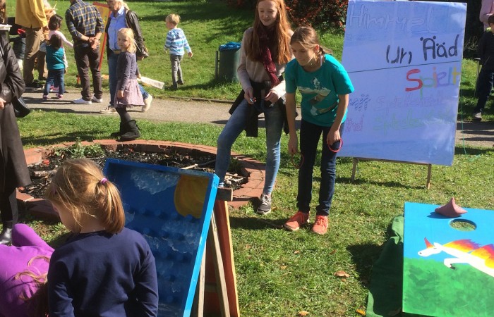 Überreichung und „Einweihung“ unseres Spiele- und Bücherregals durch unseren Partner „Die Spielbaustelle e.V.“