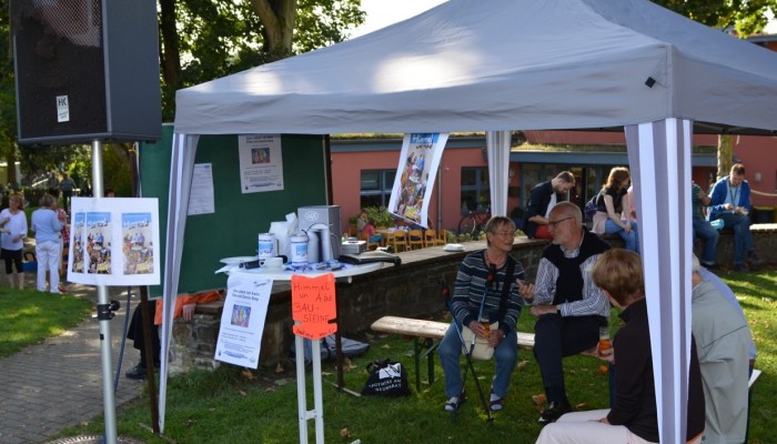 Vor dem Hintergrund des ökumenischen Geistes des unabhängigen Himmel-un-Ääd-Begegnungs-Cafés trafen sich die Mitglieder von H&Ä-Vorstand und -Projektteam mit Vertretern des Generalvikariats Köln, der Ev. Landeskirche Rheinland sowie den beiden Orts-Pfarrern Darscheid und Kotthaus zu einem Kennenlernen und Gedankenaustausch.