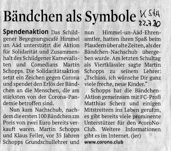 Das Schildgener Begegnungscafé Himmel un Ääd unterstützt die Aktion für Solidarität und Zusammenhalt des Schildgener Karnevalisten und Comedians Martin Schopps