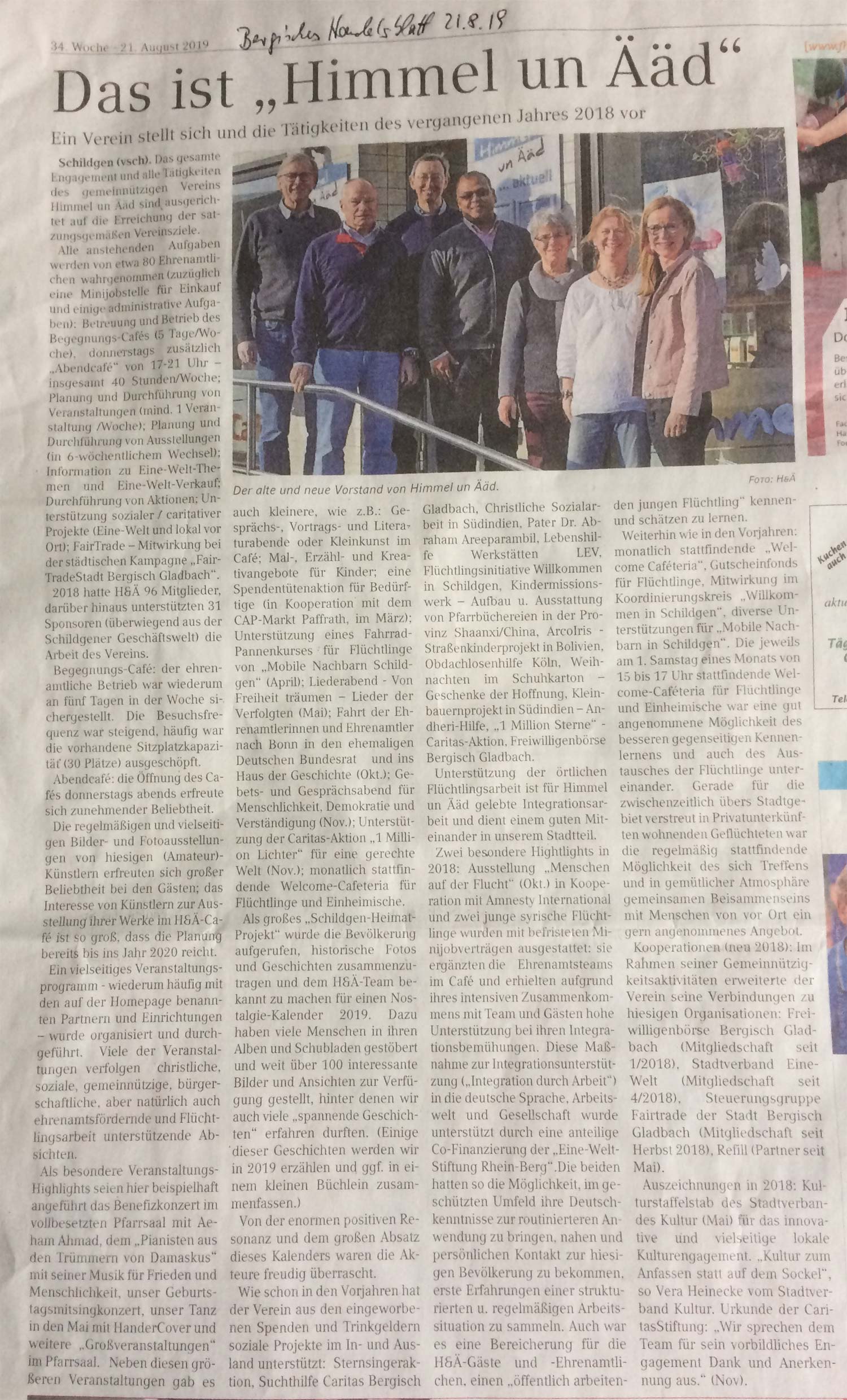 Im Juli fand die 6. ordentliche Mitgliederversammlung im Himmel un Ääd-Café statt. Nach fast viereinhalb Jahren H&Ä schauen das Team und die Besucher des H&Ä-Begegnungscafés auf eine spannende, erlebnisreiche und gute Zeit mit vielen Begegnungen, Gesprächen und Erlebnissen zurück.