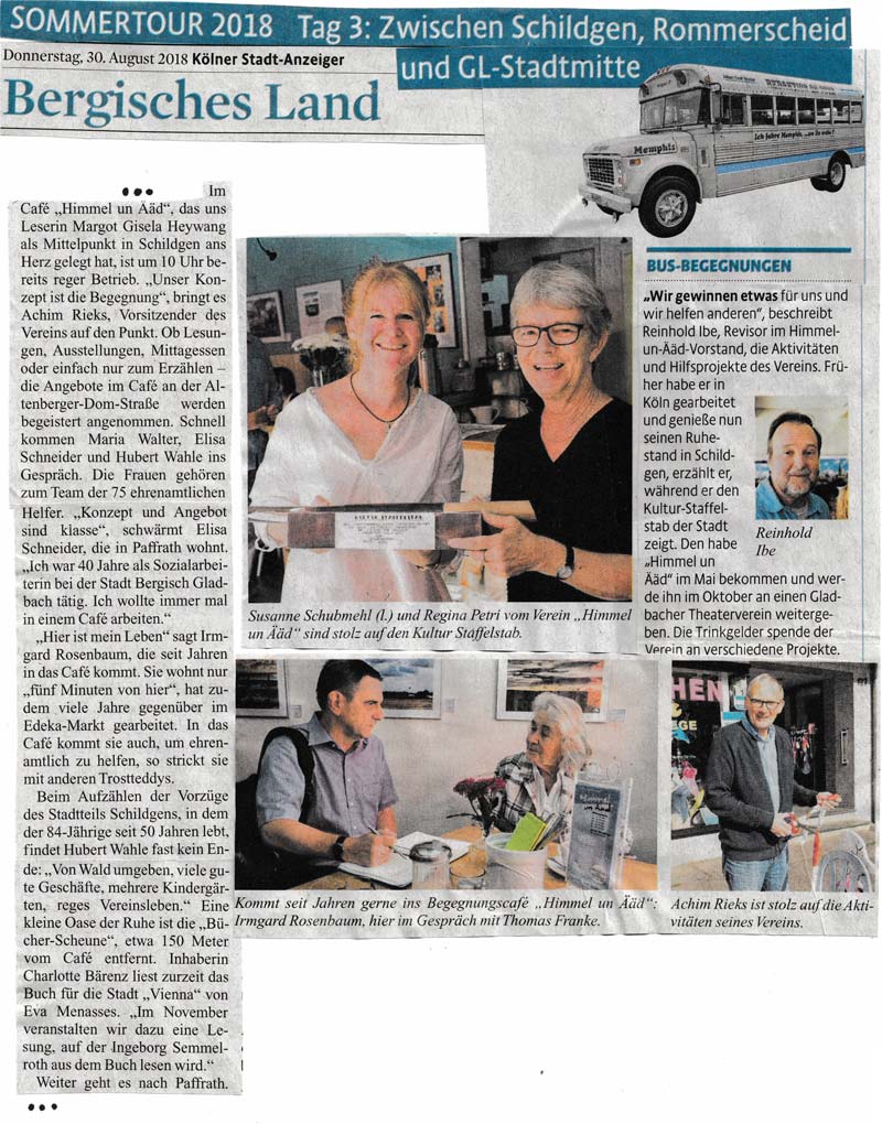 Die „Erste Hilfe“ rund um Haus Pohle ist lange beendet, aber die alten Kontakte in Schildgen leben fort. Ein gelungenes gemeinsames Projekt von Himmel un Ääd e.V. und der Eine-Welt-Stiftung.