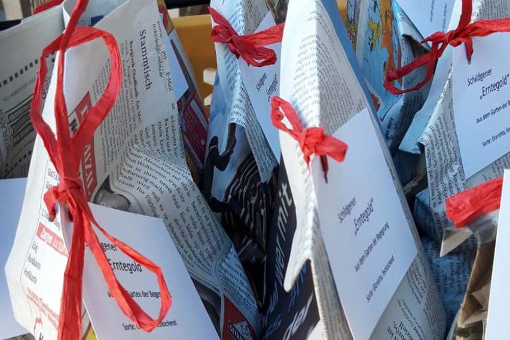 Ab sofort unsere Biokartoffeln – Glorietta festkochend – und wunderschöne Blumenpracht auf Postkartenformat gegen Spende für den Garten der Begegnung im H&Ä-Café.