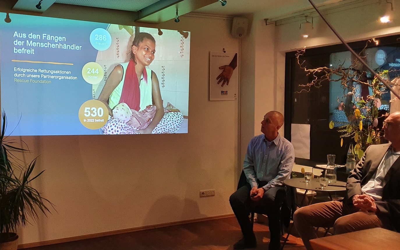Zusammengefasst wurden die Berichte des Abends in einer emotionalen Filmdokumentation der „BONO-Projektreise“ nach Indien aus November 2022. Es ging nach Hyderabad zu Chaithanya Mahila Mandali, nach Kolkata zu New Light und nach Mumbai zur Rescue Foundation.