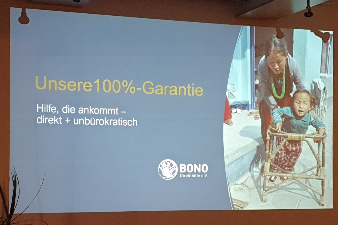 Einen Überblick über die beeindruckende Breite des „BONO-Engagements“ sowohl vor Ort, als auch hier in Deutschland, gaben die beiden Vorsitzenden Gereon Wagener und Michael Müller-Offermann. Ein besonderer Schwerpunkt in Deutschland ist die Öffentlichkeits- und Informationsarbeit.