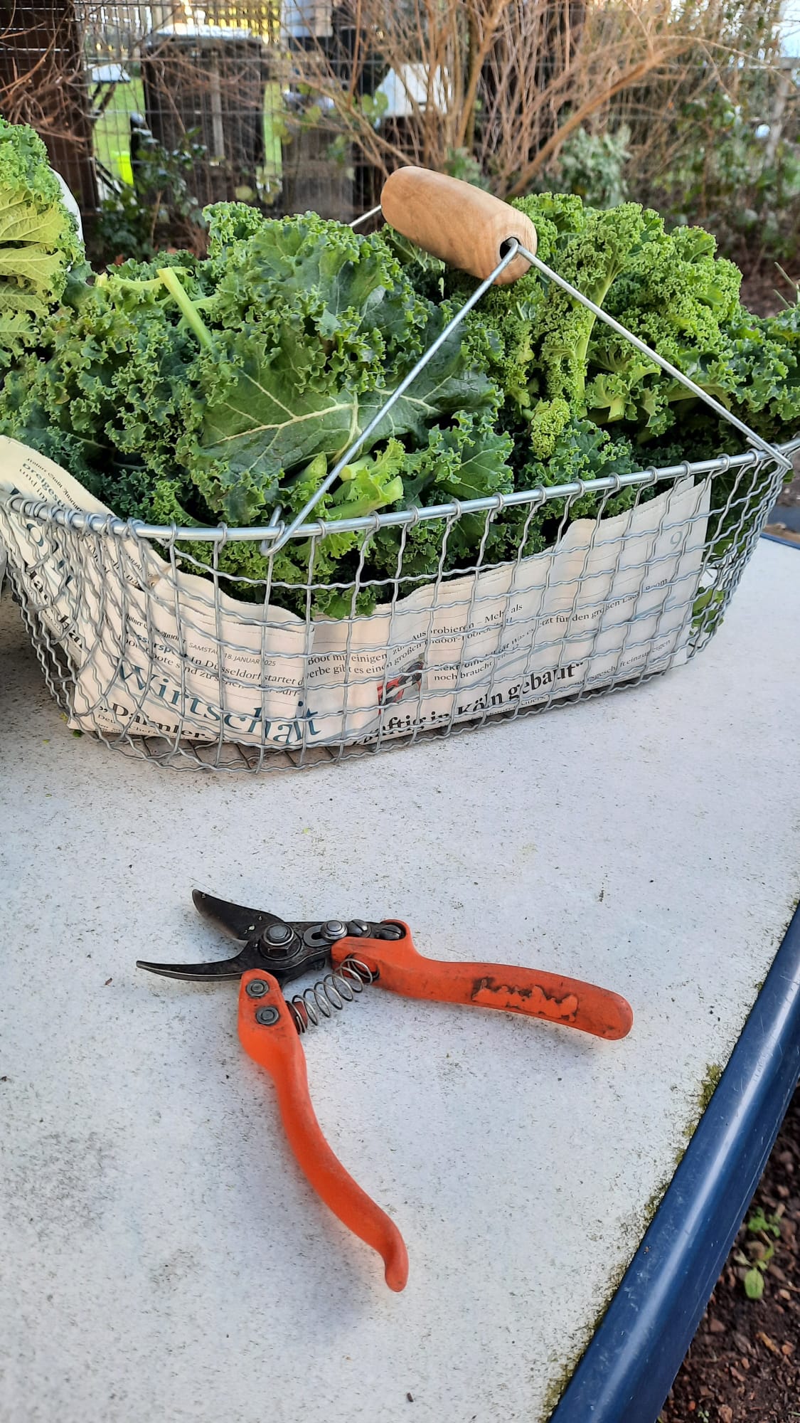 Wie viele andere Gemüsesorten wurde auch der Grünkohl von uns im „Garten der Begegnung“ gepflanzt, gepflegt und durch den ersten Frost „gut gekühlt“.