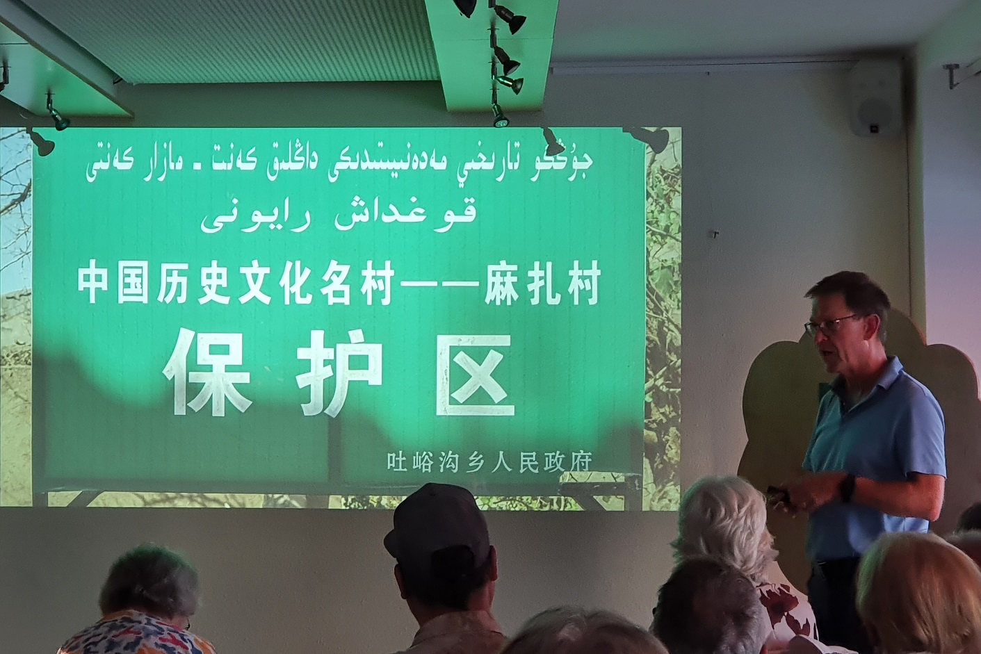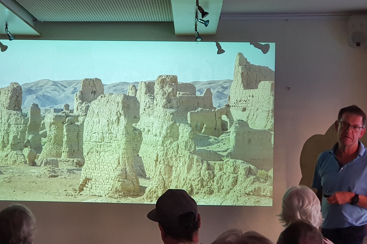 Heute nahm er uns mit auf seine Tour über die Seidenstraße in den äußersten Westen Chinas, die tiefste Eindrücke hinterlassen hat. Da ist einerseits die grandiose Natur, geprägt von den großen Wüsten Gobi und Taklamakan sowie dem Hochgebirge des Karakorums mit seinen über 7000 m hohen Gipfeln. Hinzu kommen die beeindruckenden, teilweise über 2000 Jahre alten Kulturdenkmäler, die entlang der Seidenstraße entstanden sind und die Begegnungen mit den dort lebenden Menschen, den Uiguren, Kasachen und Kirgisen.
