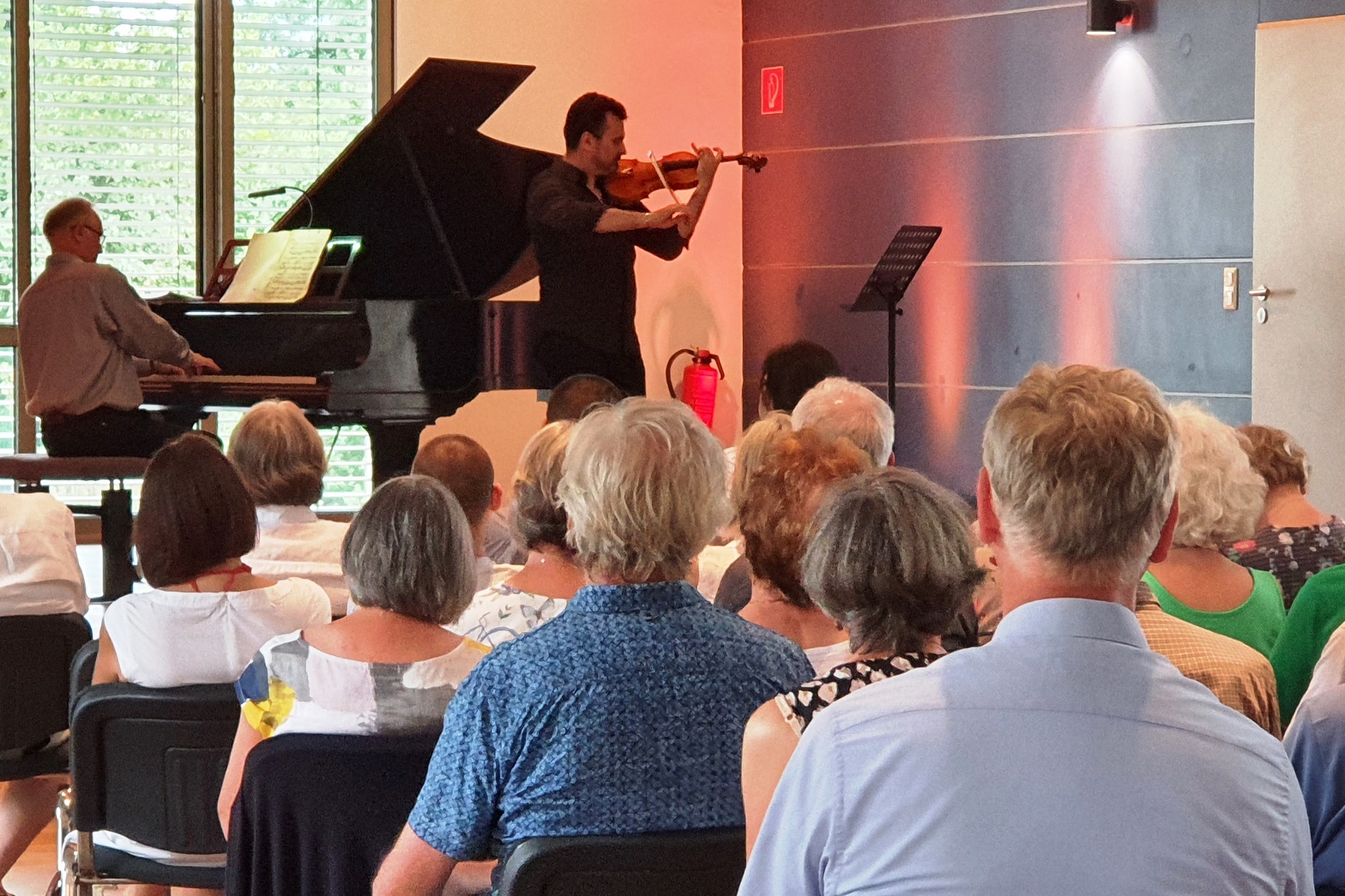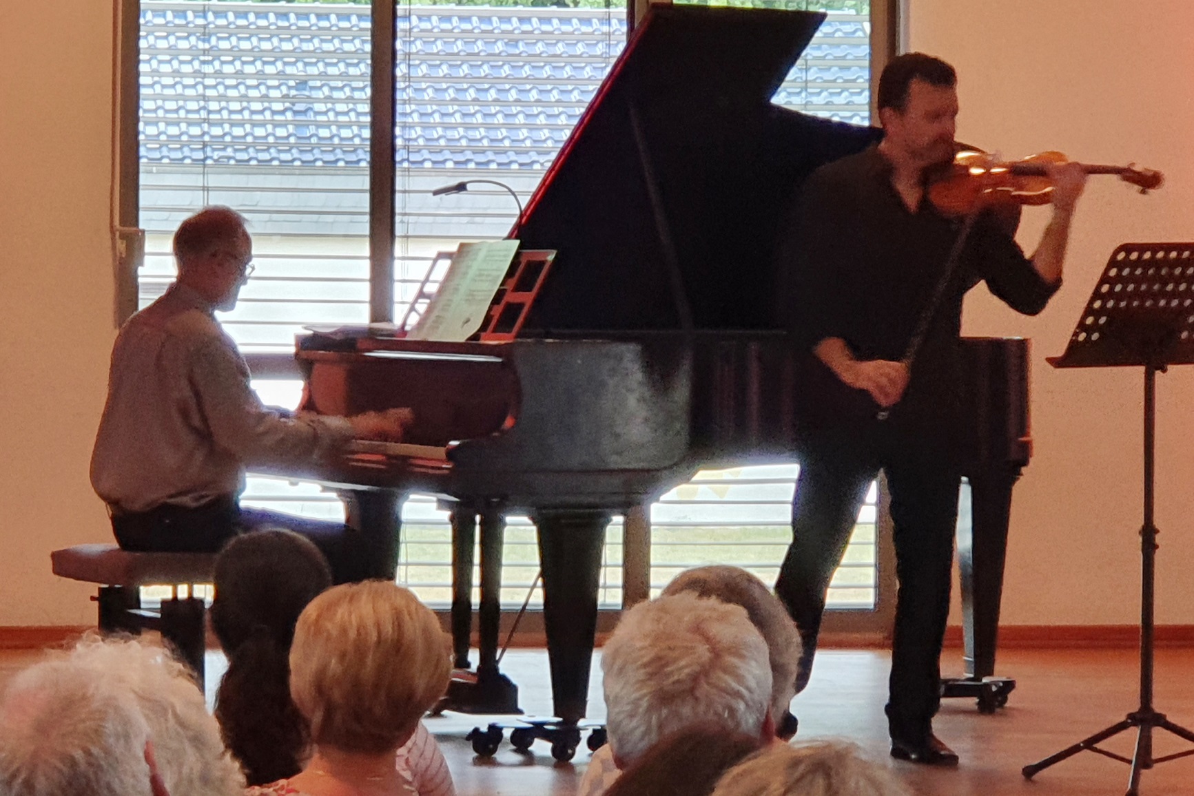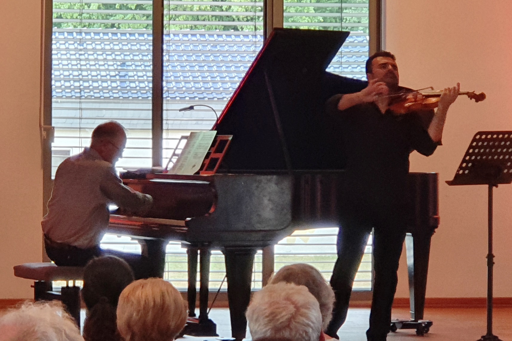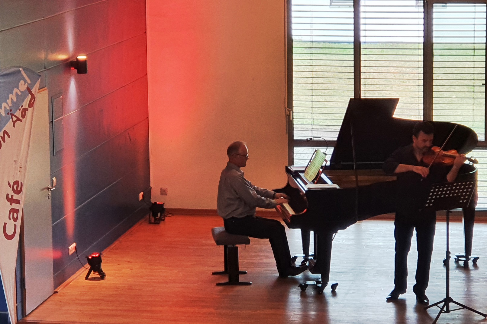 Carmelo de los Santos, Violine, und Falko Steinbach, Klavier, spielten Werke von W.A Mozart, A. Piazzolla, Hanns Eisler, E. Grieg und F. Steinbach.