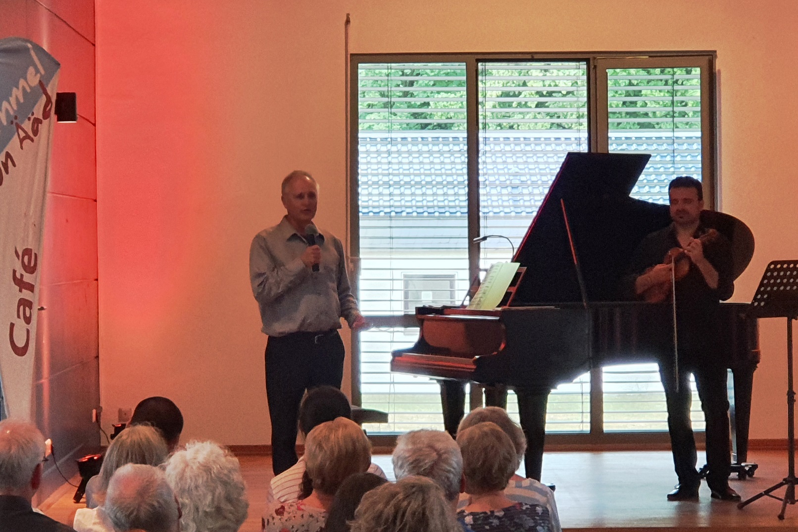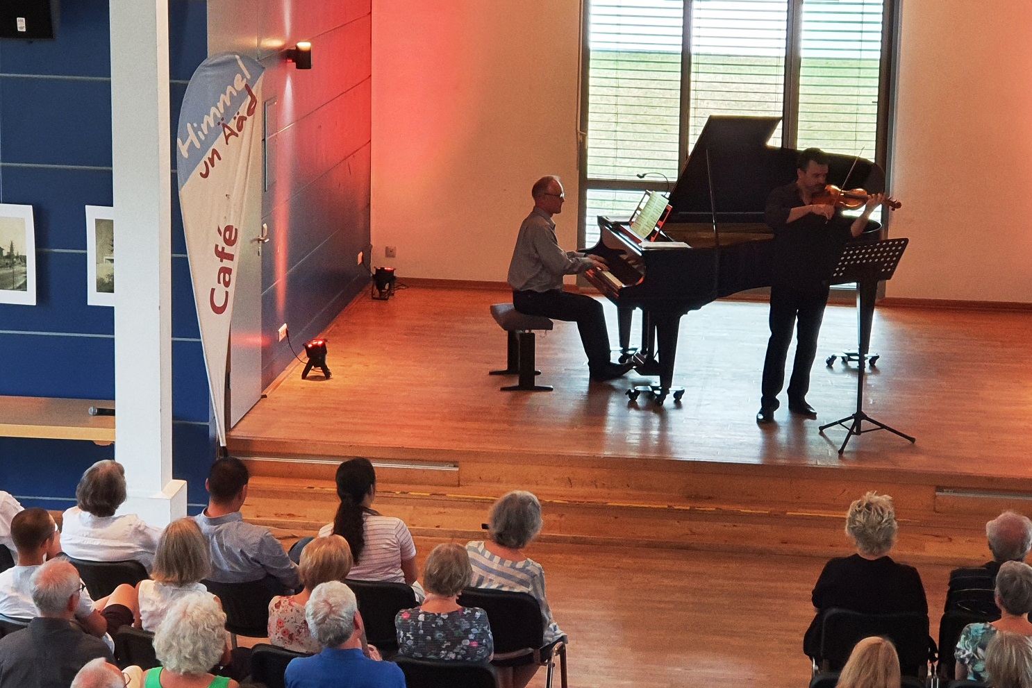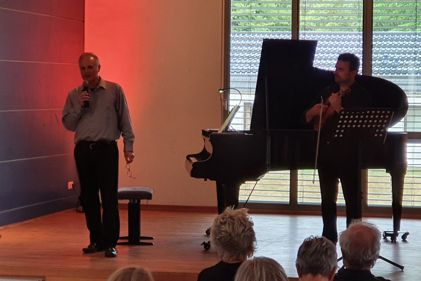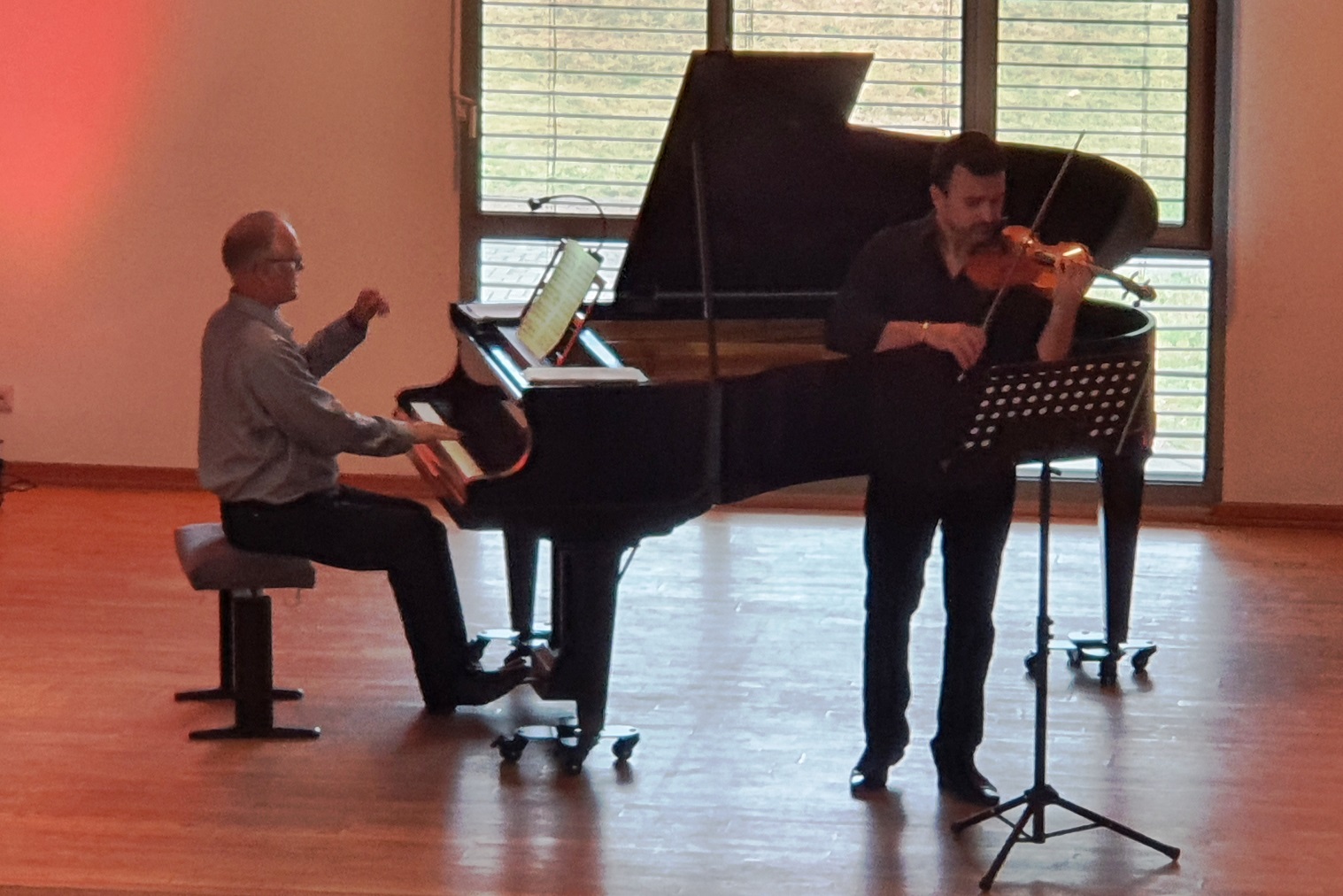 Carmelo de los Santos, Violine, und Falko Steinbach, Klavier, spielten Werke von W.A Mozart, A. Piazzolla, Hanns Eisler, E. Grieg und F. Steinbach.