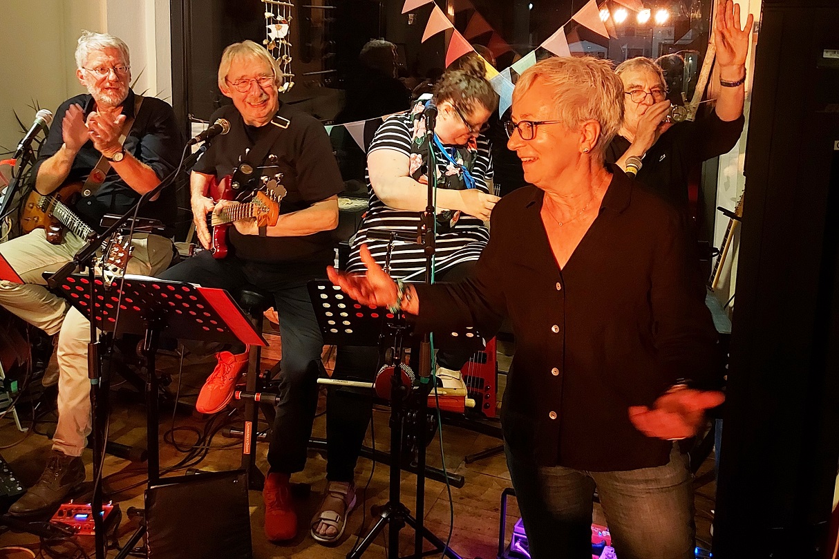 Große Wiedersehensfreude, denn die Band musste leider (wie so viele andere auch) in der Vergangenheit viele geplante Auftritte streichen. Umso größer war bei der Band und natürlich auch den Gästen die Begeisterung, wieder einen gemeinsamen  Musikabend zu erleben. Das Café war ausgebucht, die Stimmung unglaublich gut.