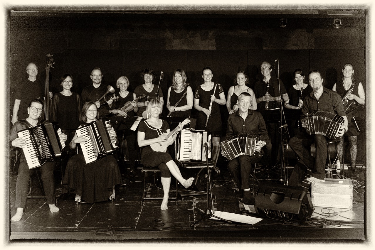 Neben argentinischen Klassikern und Kompositionen des berühmten Tango-Meisters Astor Piazzolla brachte Stephan Langenberg mit seinem 15 köpfigen Orchester auch andere Stilrichtungen u.a. aus dem Balkan, aus Israel und sogar aus Finnland zu Gehör, in Original- und eigenen Arrangements.