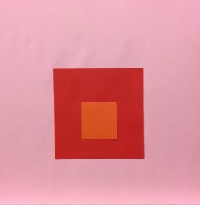 Eine der gezeigten Werkgruppen befasst sich mit der Form des Quadrats in Bezug zur Farbe. Die Werke erzählen, was diese symmetrische geschlossene Form innerhalb ihrer 4 Seiten an Kontemplation und Spannung zu evozieren vermag.