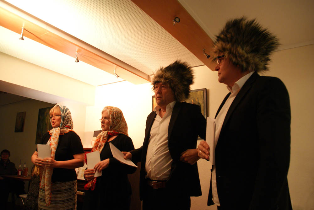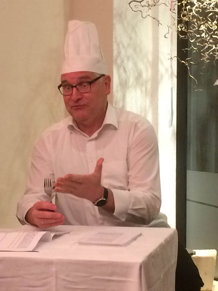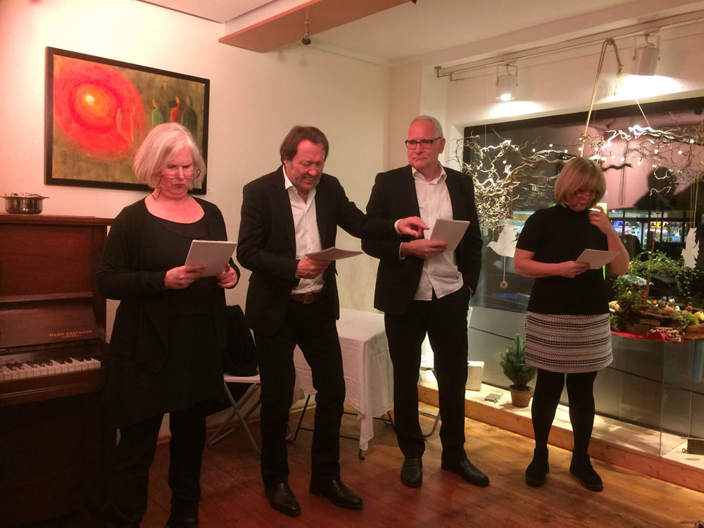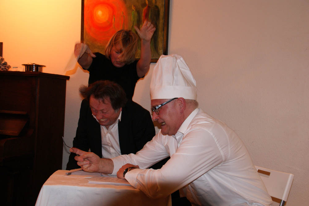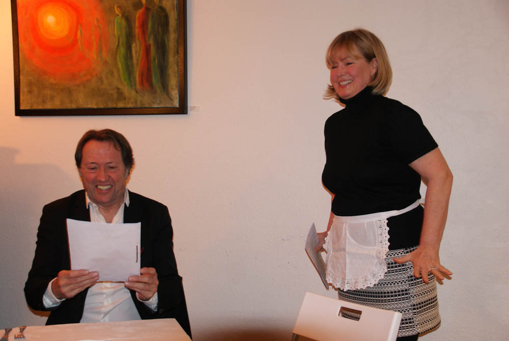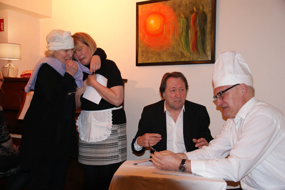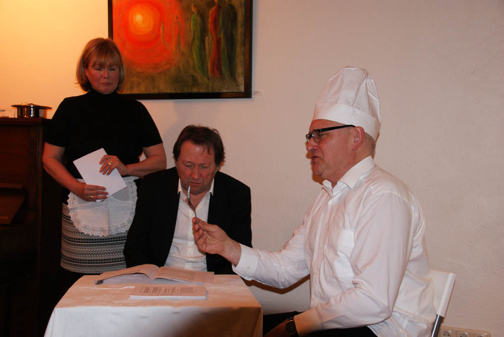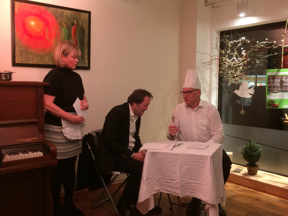 Zum zweiten Mal gastierte das Zimmertheater Mimento am 20.1.2017 bei Himmel un Ääd: diesmal drehten sich die teils gelesenen, teils gespielten Szenen mit Musikbegleitung am Klavier rund ums Essen. Ob beim Dialog zwischen Masthuhn und Kapaun von Voltaire, beim Vortrag über die Löcher im Käse von Tucholsky , Szenen im Restaurant u.v.m.: professionell und mit viel Enthusiasmus brachte das Team von Mimento das begeisterte Publikum zum Lachen.