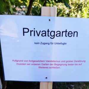 Traurig – Garten der Begegnung wegen Vandalismus bis auf Weiteres geschlossen