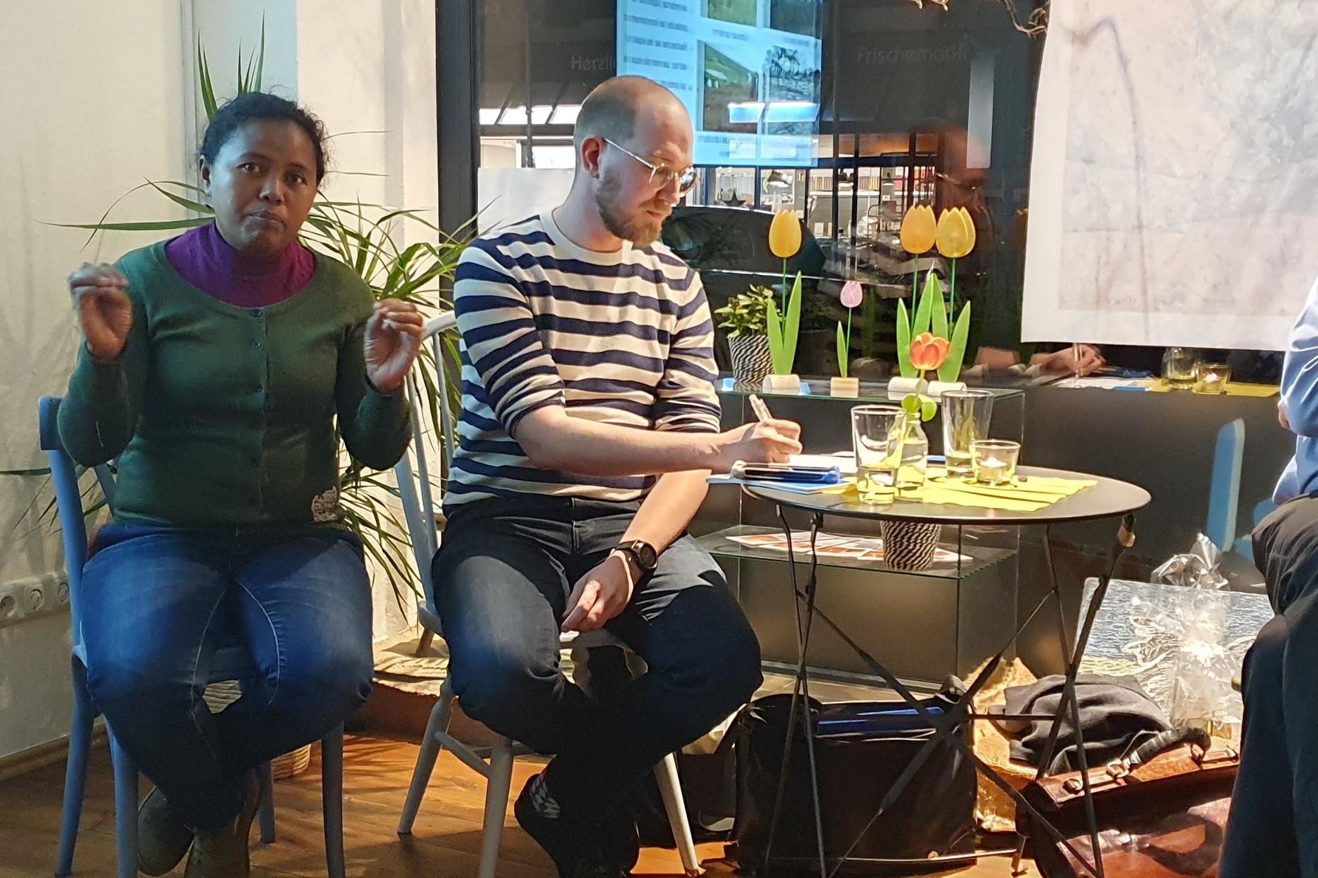 Dazu müssen sie beide erst nach Schildgen kommen, ins Begegnungscafé Himmel und Ääd: Die Misereor-Botschafterin Hanitriniony Ratsimbazafy staunte nicht schlecht, als sie über ihr Projekt im Hochland von Madagaskar berichtete und prompt eine Landsfrau antraf, die schon lange in Leverkusen lebt und von dort ins H&Ä-Café gekommen war. Rund 20 Zuhörende erhielten einen einmaligen Eindruck von Madagaskar, der Insel im Indischen Ozean und hörten von dem von Misereor unterstützten Projekt Vaharta, das die Referentin vorstellte.