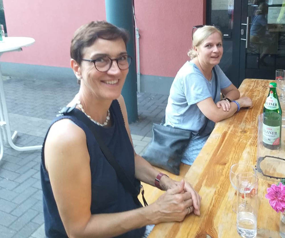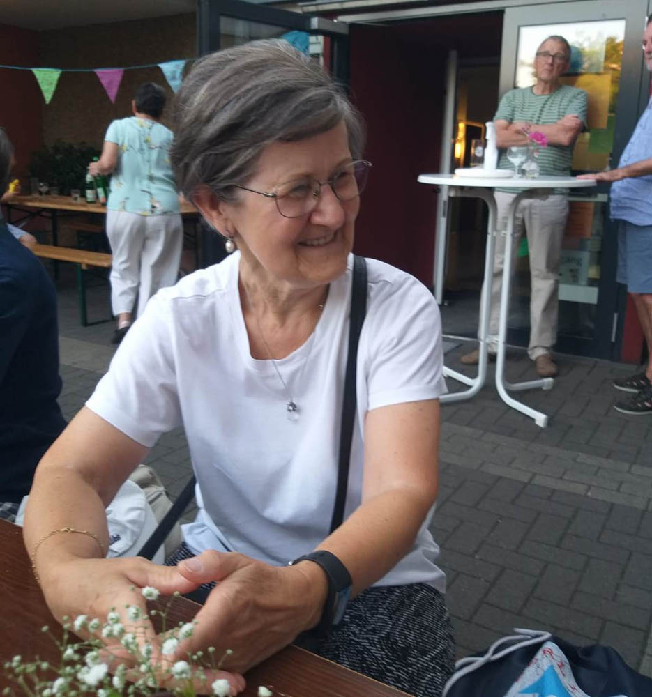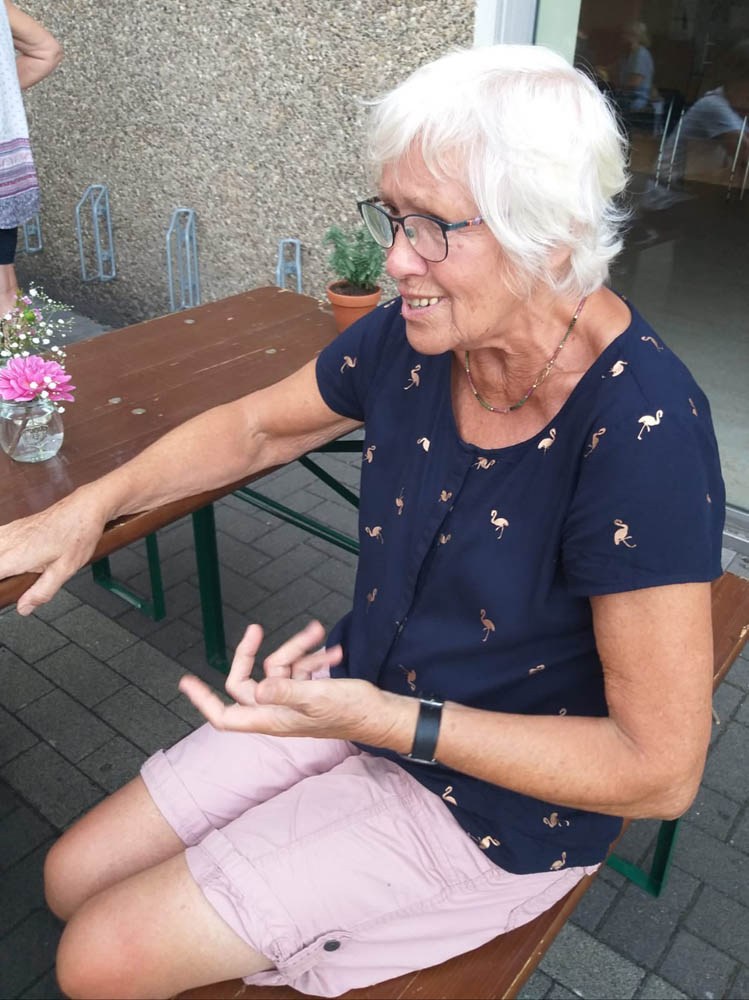 Viele Ehrenamtliche waren gekommen, auch etliche, die wir (wegen Corona) schon länger nicht gesehen hatten. Alle waren froh, nach so vielen Wochen Corona-Abstinenz mal wieder in der H&Ä-Familie zusammen zu sein. Frohes Wiedersehen, schöne Gespräche, große Hitze, das Essen (Lasagne und ein köstlich bunter Salat mit Radieschen-Dressing, geliefert von der Küche der Jugendbildungsstätte Haus Altenberg) war super lecker, Nachtisch (Melone und Eis) geht sowieso immer. Sprudelwasser kastenweise, ein paar wagten sich sogar an Wein und Bier.