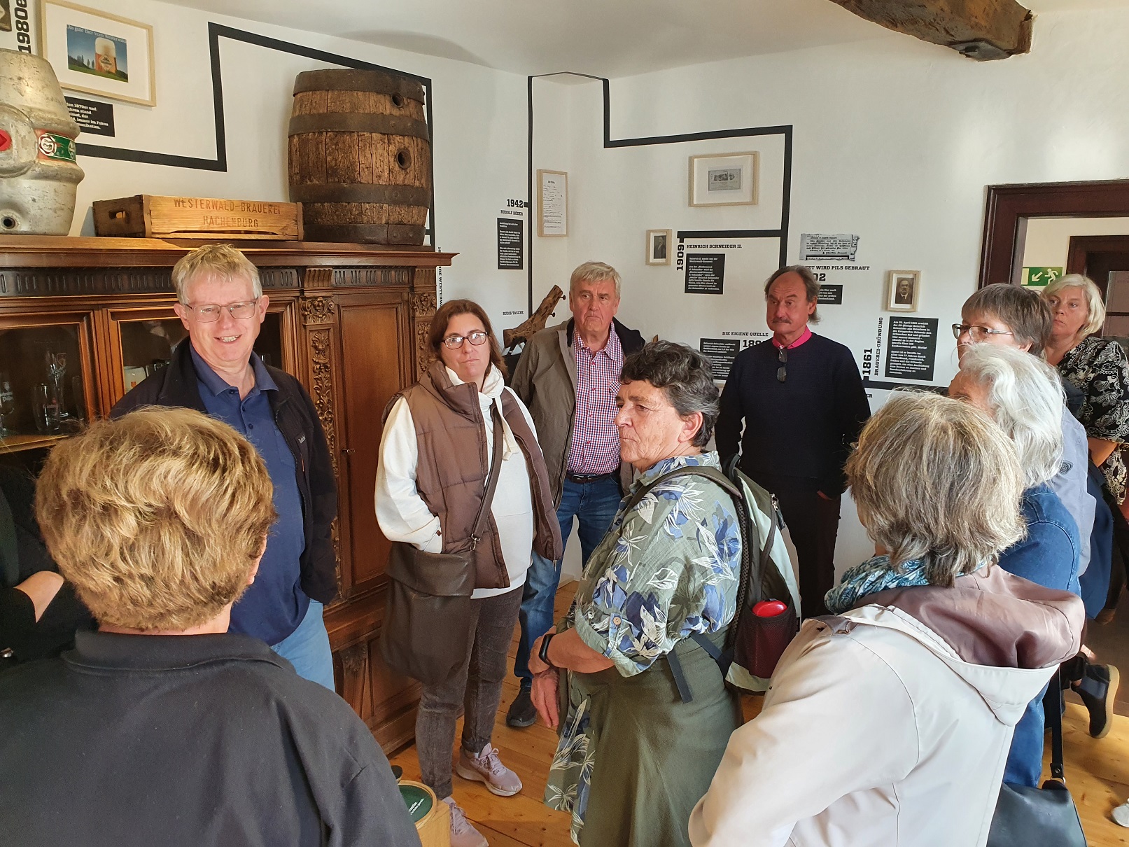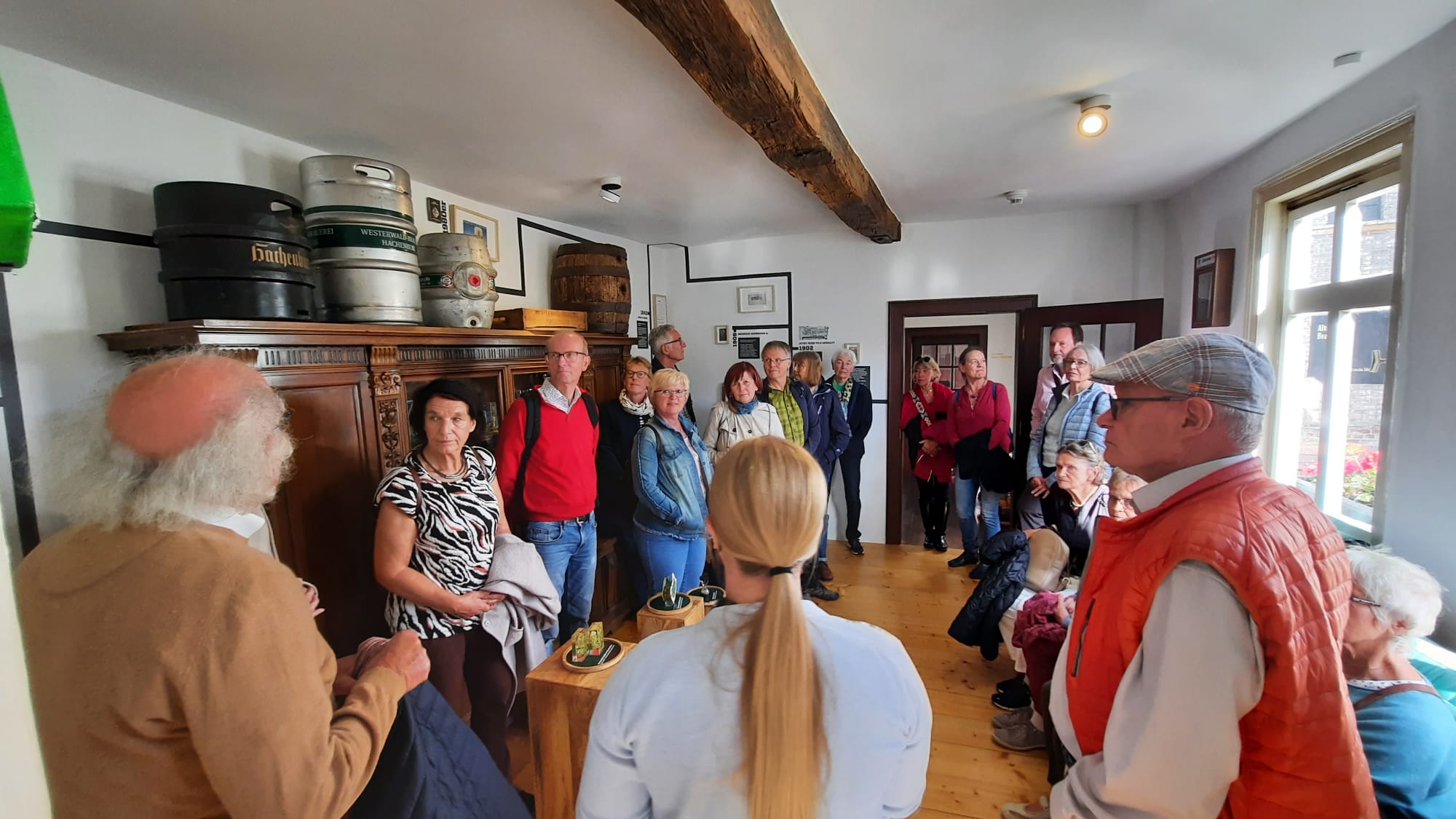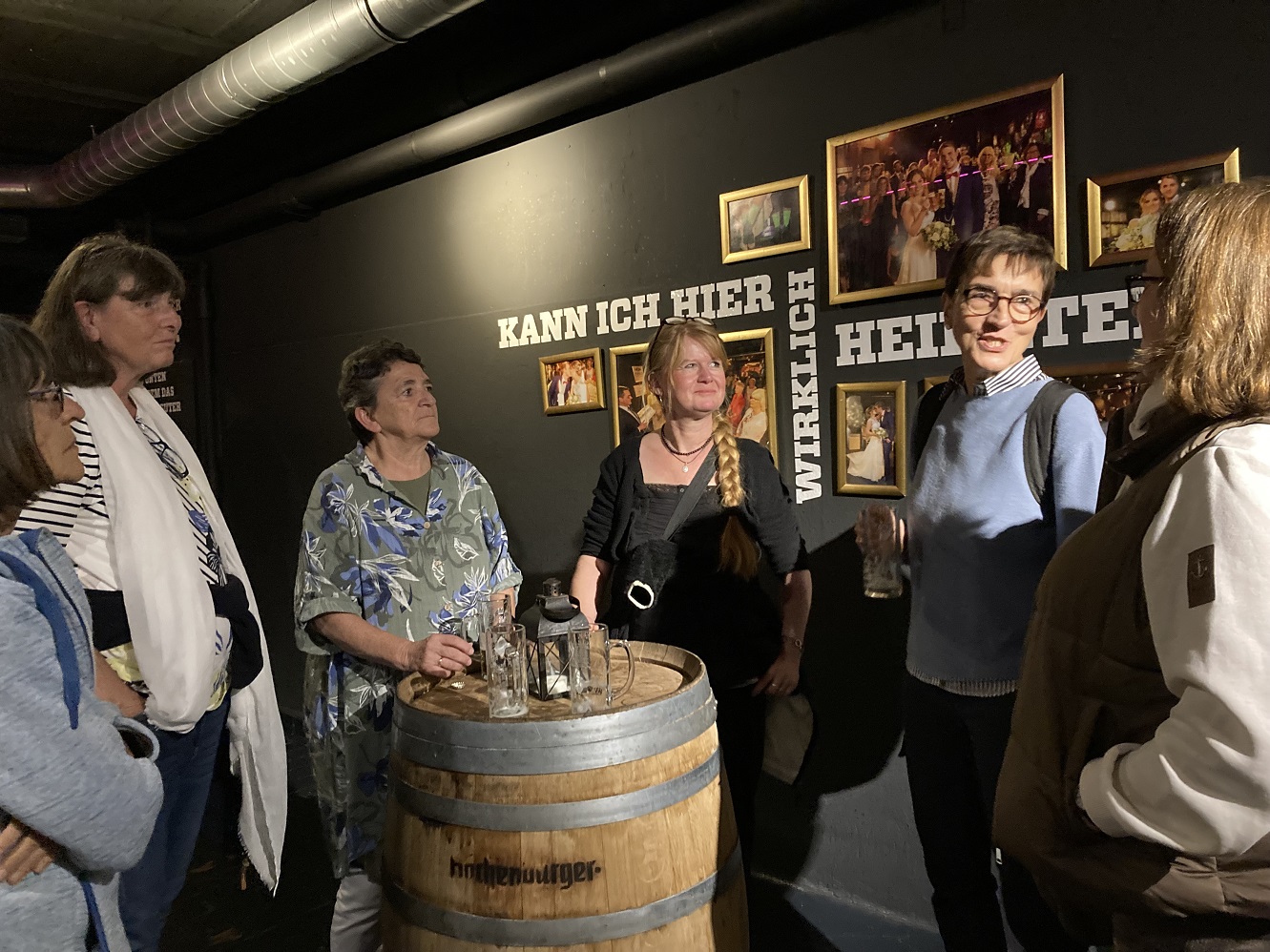 In zwei Gruppen erfuhren wir vieles über diese in fünfter Generation geführte Familienbrauerei, über Hopfen und Malz und das Bierbrauen im Speziellen. Das Sudhaus, das Hopfenlager, die Malzaufbereitung, die Gärungstanks, Abfüllung und Logistik, der Bierkeller – wir waren sehr beeindruckt. Sogar heiraten kann man in diesem außergewöhnlichen Ambiente; auf Bestellung kommt die/der Standesbeamte. Aber auch Braukurse, z.B. für Junggesellenabschiede oder Kegelclubs, in Verbindung mit Brauereiführungen werden gerne gebucht.
