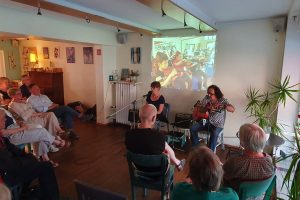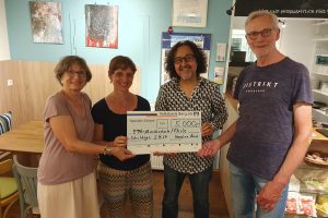 Wir freuen uns sehr, dass wir den Gründern der Escuela Popular de Artes, Michaela Weyand und Eduardo Cisternas, anlässlich eines besonderen Konzertabends im Café einen symbolischen Spendenscheck über die bisher im Rahmen der H&Ä-Quartalsprojekte unerreichte Spendensumme von 5.000 Euro überreichen konnten – davon 2.500 Euro durch zwei Benefizkonzerte des A-Tempo-Chores sowie der Bands krausam, Pfingst und SMART FOOLS – ein großer Dank allen Beteiligten.