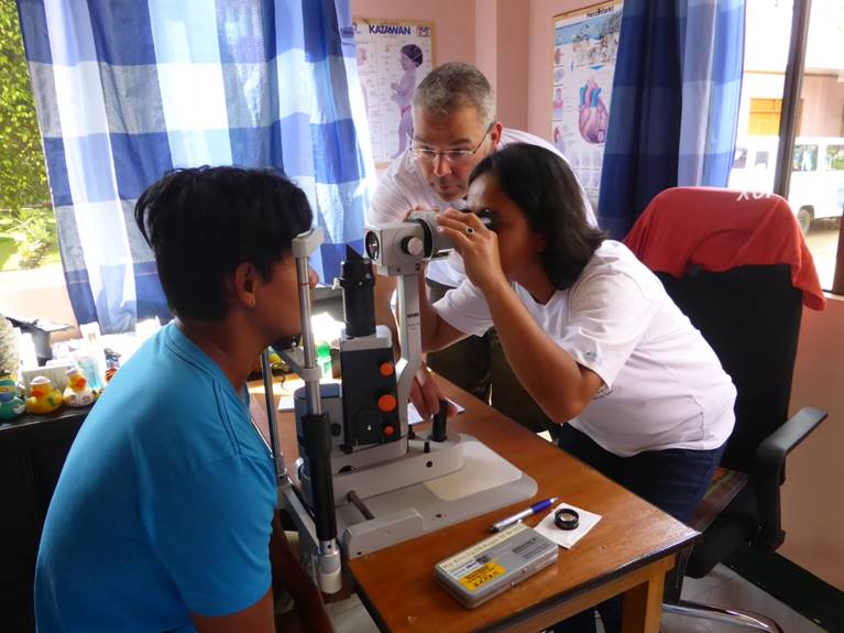 Während des Besuchs von Herrn Dr. Stephan und mir wurden neben Reihenuntersuchungen von Kindern in der örtlichen Schule viele Augenkranke in der Krankenstation untersucht und therapiert sowie das Personal geschult. Das nächste Ziel ist der Bau eines Operationsraums, damit demnächst u.a. auch am grauen Star Erblindete durch eine Operation wieder zum Sehen verholfen werden kann.