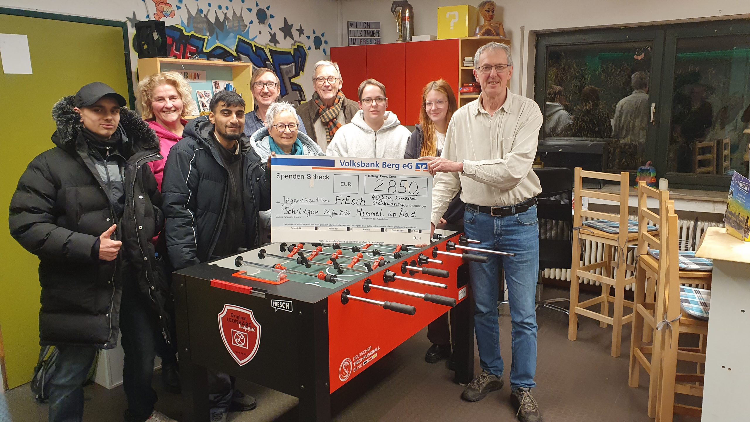 Wolfgang Obermann mit Christoph Schwiedergall und Team vom Schildgener Kinder- und Jugendzentrum FrEsch für die Ausstattung der Medienecke mit 2 neuen Rechnern. Ein großes Dankeschön allen, die zu diesem wunderbaren Ergebnis beigetragen haben.