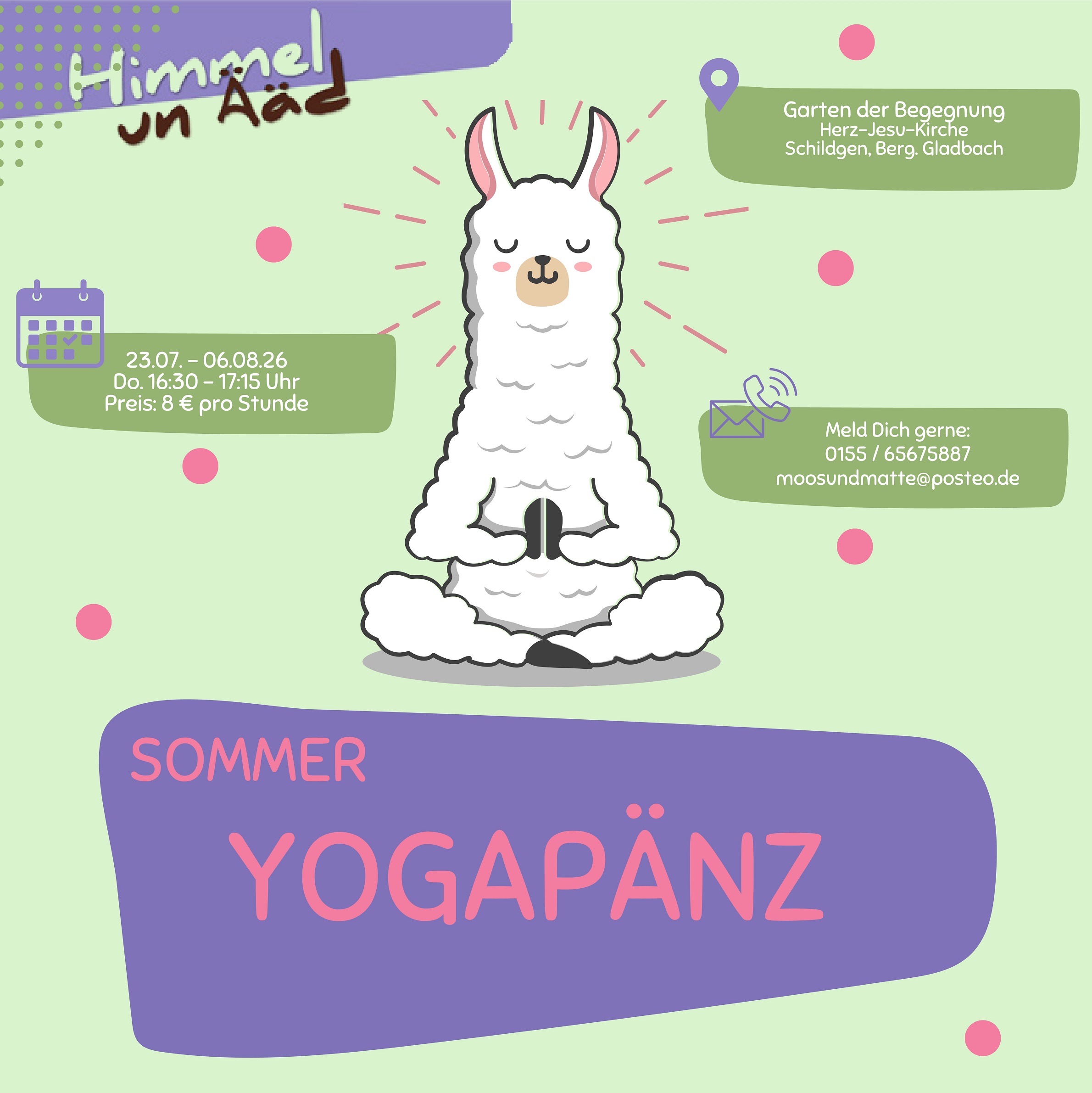 Bringt einfach bequeme Kleidung und (wenn vorhanden) eine Matte mit und seid dabei, wir freuen uns auf euch!