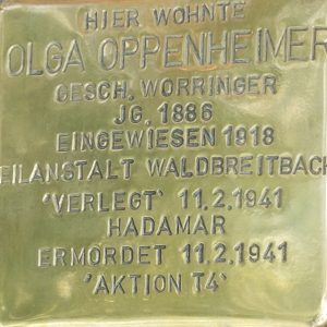 Am 10. Februar 1941 wird Olga Oppenheimer mit zwei weiteren Frauen aus Waldbreitbach abgeholt. Ein ausrangierter Postbus bringt sie in die Tötungsanstalt Hadamar. Dort, unter dem Deckmantel der Aktion T4, werden Menschen mit Behinderung und psychischer Erkrankung systematisch ermordet – als „unwertes Leben“.