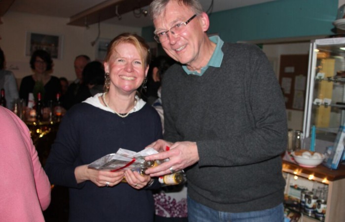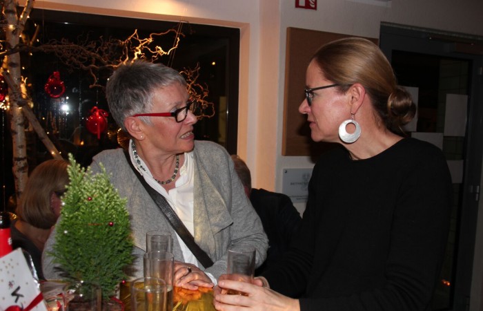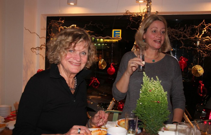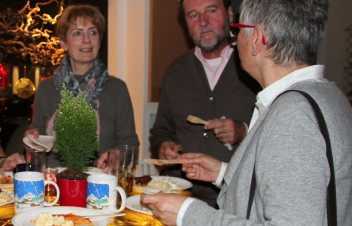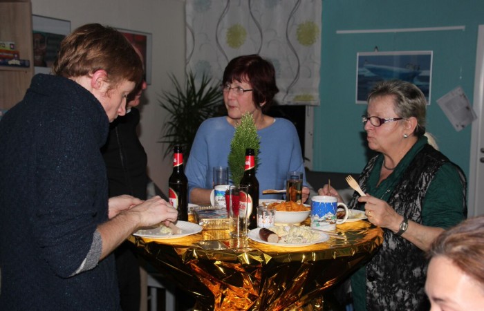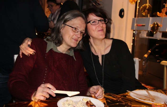 Wohnzimmerlich entspannt und herzlich war auch die Atmosphäre. Viele waren gekommen. Die lebhaften Gespräche und das herzliche Lachen, wunderbar gedämpft von der neuen Schallschutzdecke, wurden nur unterbrochen, um das leckere Büffet zu plündern. Es ist eine Freude zu sehen, wie sich aus der gemeinsamen Arbeit eine herzliche Gemeinschaft entwickelt. Es war ein gutes Jahr für das Café. Die Freude darüber war deutlich zu spüren.