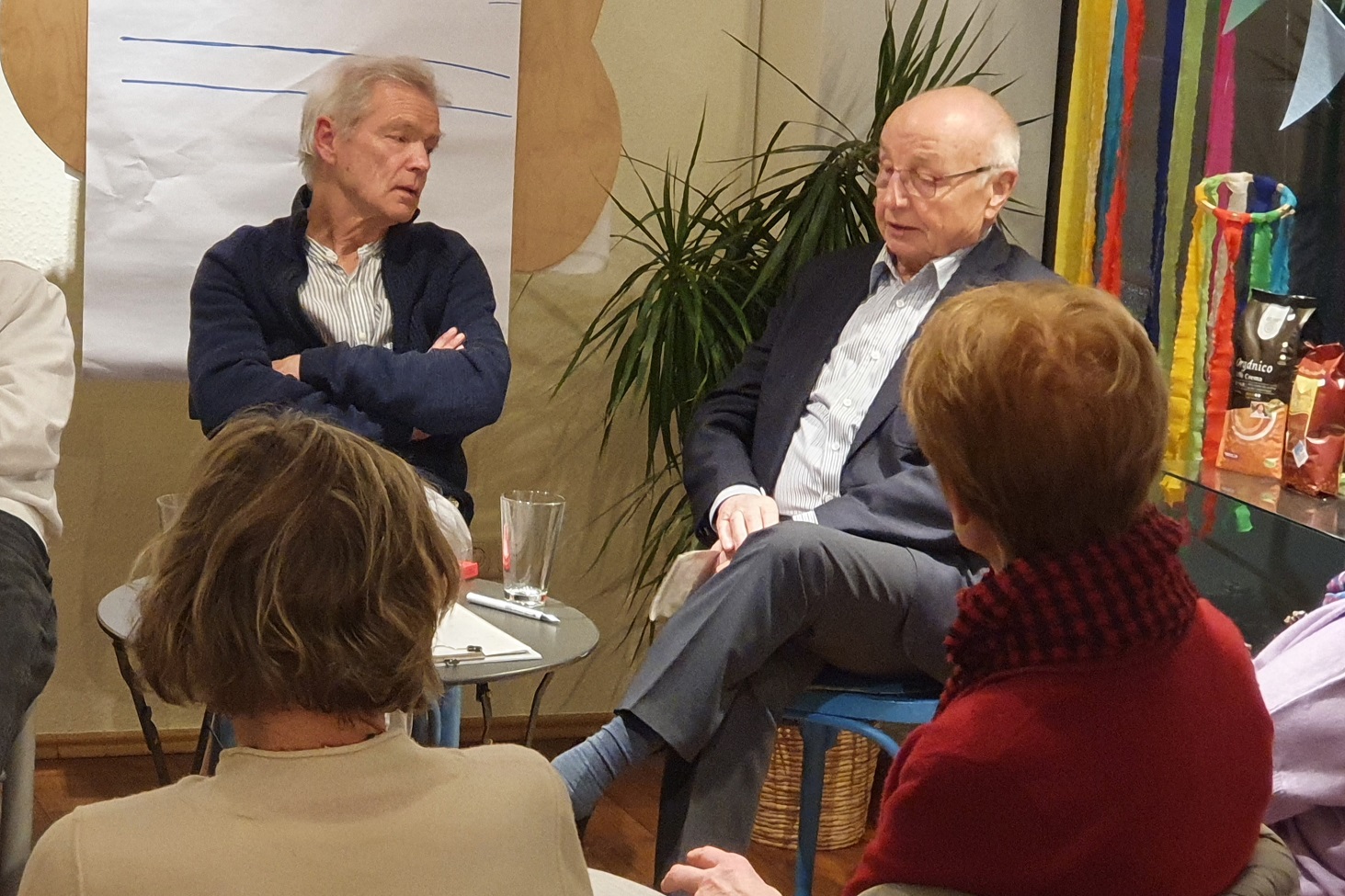 Zur zweiten Veranstaltung der Reihe „Wie wollen wir leben?“ waren der 86 jährige Karl Kaufhold und der 19 jährige Justus Tralls eingeladen.