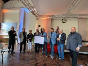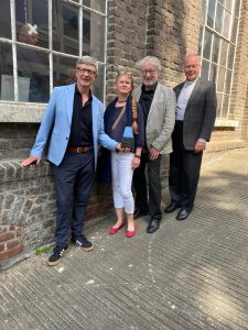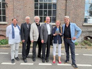 von links nach rechts: Petra Weymans (Kulturbüro Stadt GL), Heribert Bergermann (Vorsitzender Stadtverband Kultur),Hein Haun (StPaSch), Pfarrer Wilhelm Darscheid, ganz rechts Jörg Bärschneider (StPaSch)