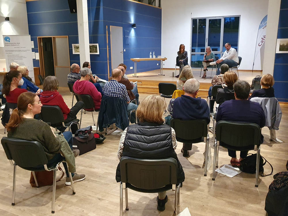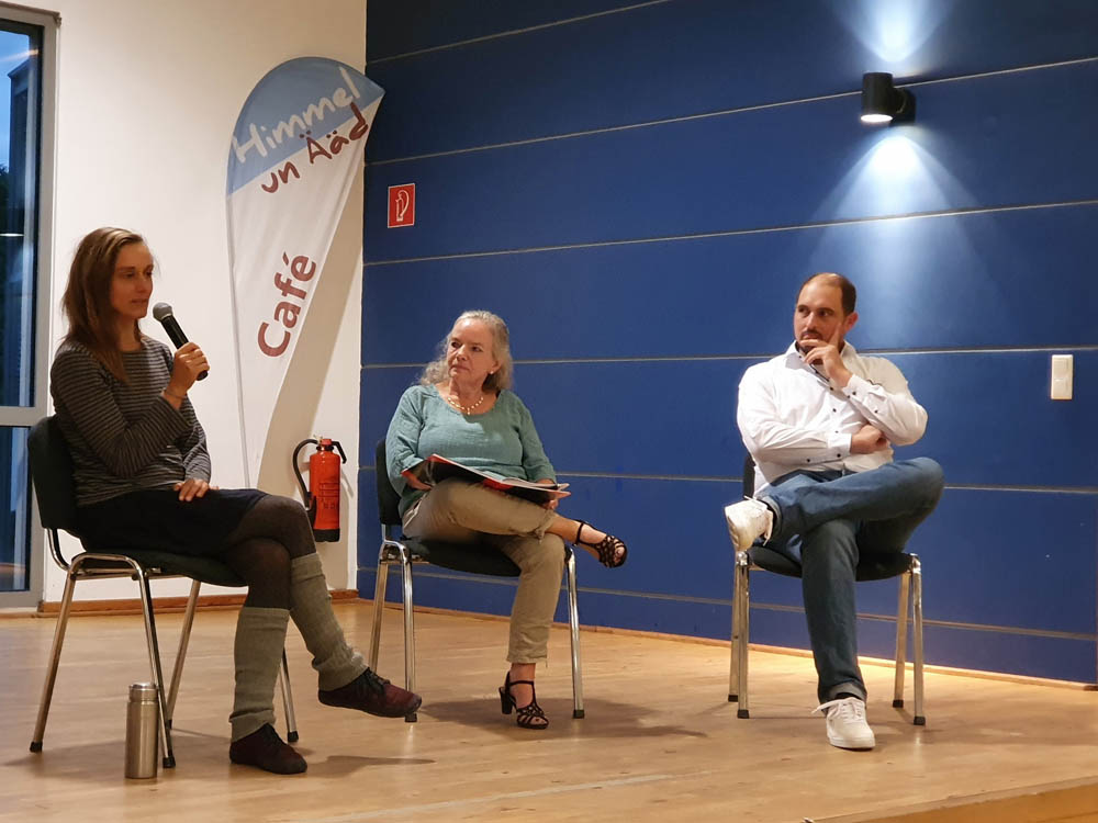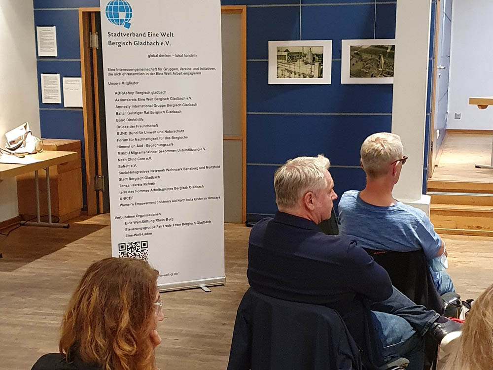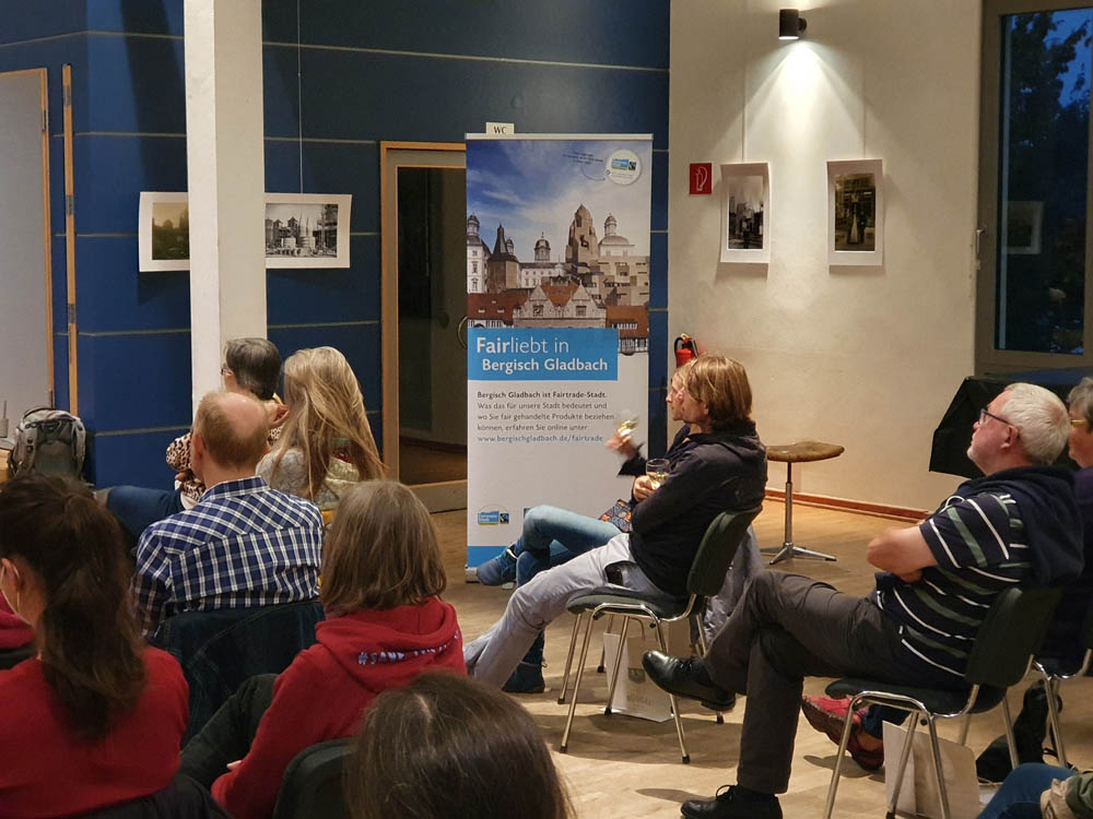 mit der Kölner „Zero-Waste-Aktivistin“ Olga Witt (‚Tante Olga‘) und dem Bergisch Gladbacher „Abfall-Manager“ David Zenz – profund moderiert von Dr. Renate Vorwerk, der Vorsitzenden des Stadtverbandes Eine-Welt.